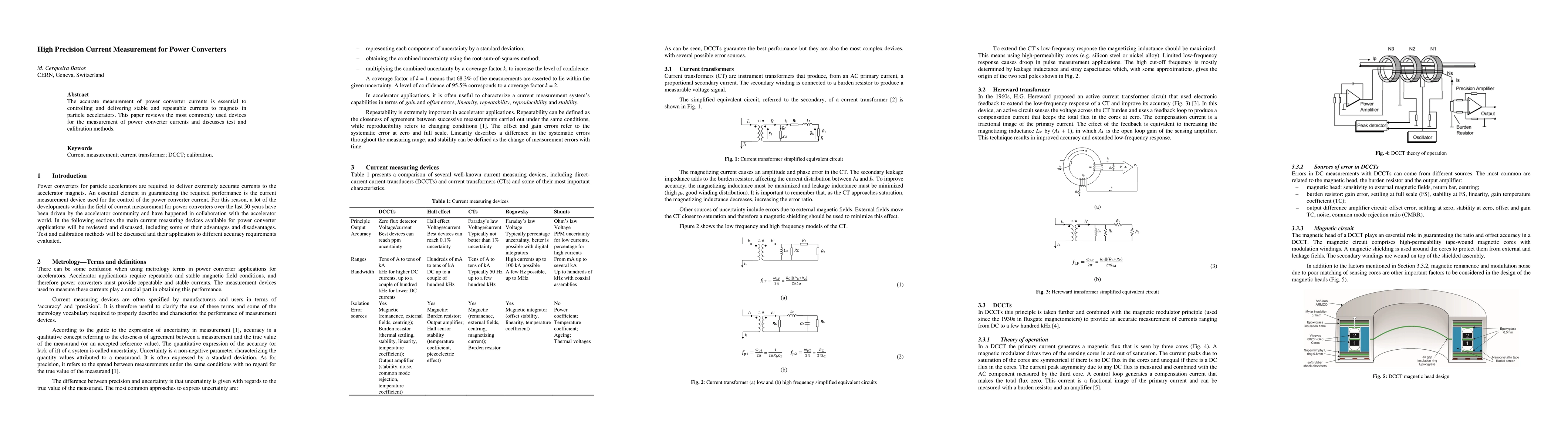 The accurate measurement of power converter currents is essential to controlling and delivering stable and repeatable currents to magnets in particle accelerators. This paper reviews the most commonly used devices for the measurement of power converter currents and discusses test and calibration methods.