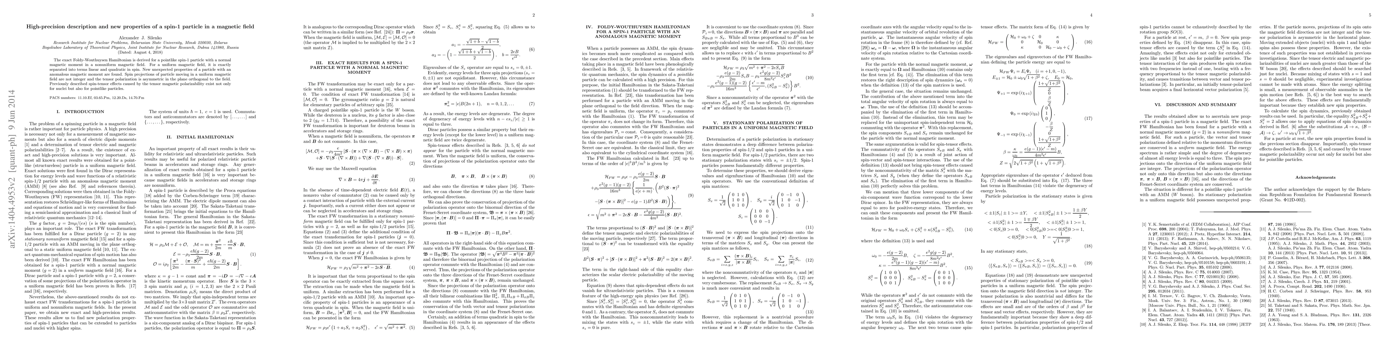 This paper derives the exact Foldy-Wouthuysen Hamiltonian for a spin-1 particle in a magnetic field, revealing new properties such as non-integer spin projections and asymmetric tensor polarization for particles with anomalous magnetic moments, extending previously known spin-tensor effects beyond nuclei.