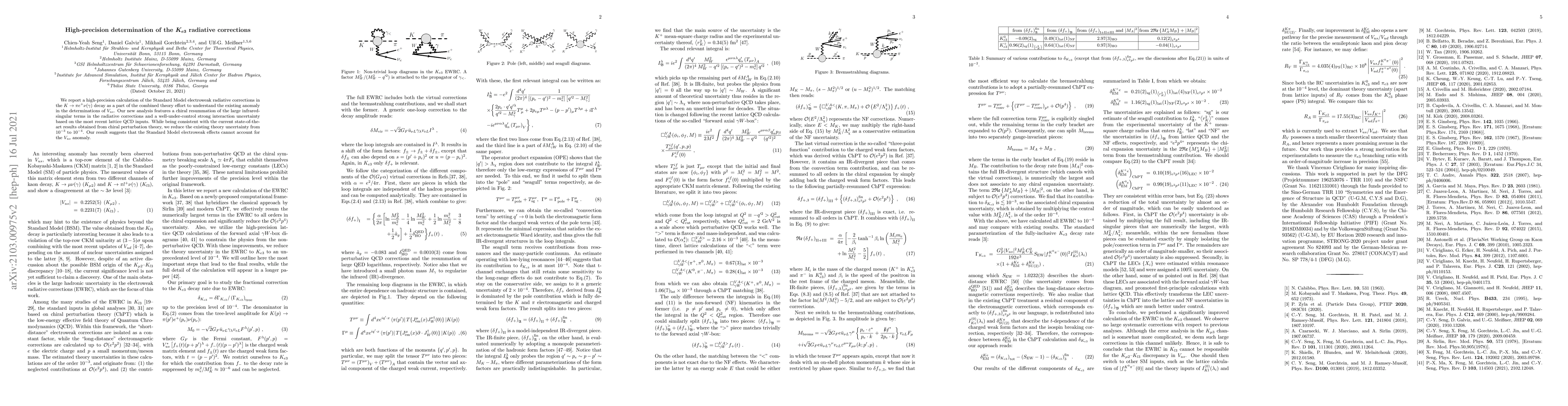 This research presents a precise calculation of electroweak radiative corrections in the $K o pi e^+ u(gamma)$ decay, reducing uncertainty from $10^{-3}$ to $10^{-4}$. Despite consistency with previous results, it suggests that Standard Model effects can't explain the $V_{us}$ anomaly.