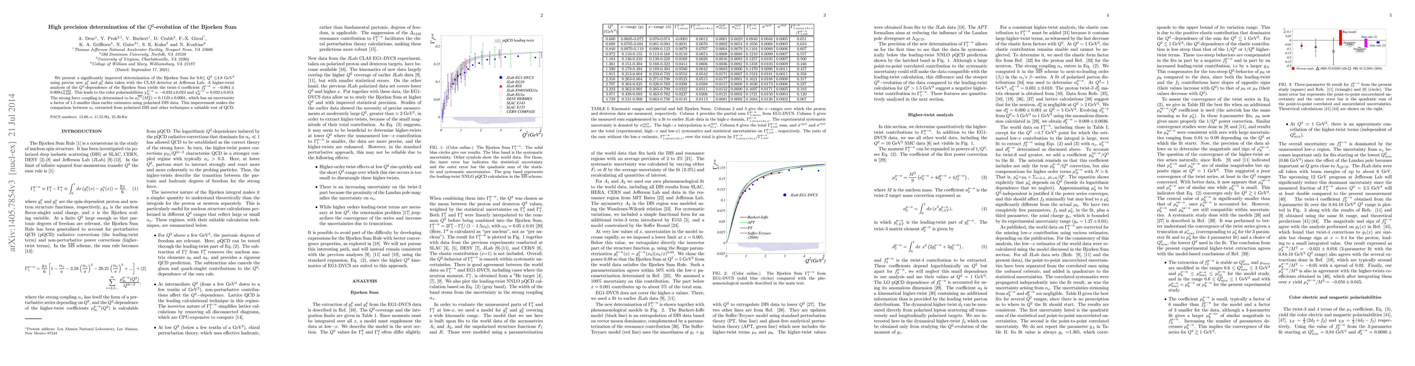 The research presents an enhanced precision in determining the Bjorken Sum for 0.6≤Q²≤4.8 GeV²² using updated proton and deuteron g₁p and g₁d data from CLAS detector at Jefferson Lab. This leads to the discovery of twist-4 coefficient f₂p-n=-0.064±0.009±0.036_0.032, and color polarizabilities χE⁽p-n⁾=-0.032±0.024 and χB⁽p-n⁾=0.032±0.013. The strong force coupling αs̅MS(MZ²) is calculated as 0.1124±0.0061, a significant reduction in uncertainty compared to previous estimates from polarized DIS data. This refinement allows for a meaningful comparison of αs from polarized DIS and other QCD techniques.