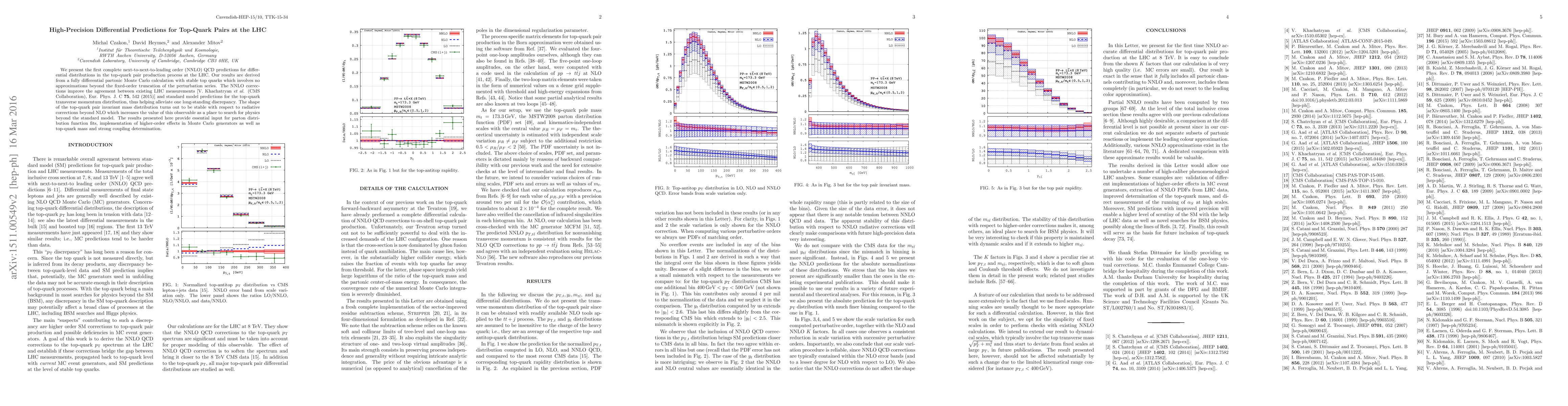 This paper presents the first complete next-to-next-to-leading order (NNLO) QCD predictions for differential distributions in top-quark pair production at the LHC, improving the agreement between LHC measurements and standard model predictions. The results enhance the search for physics beyond the standard model and provide crucial input for various theoretical analyses.