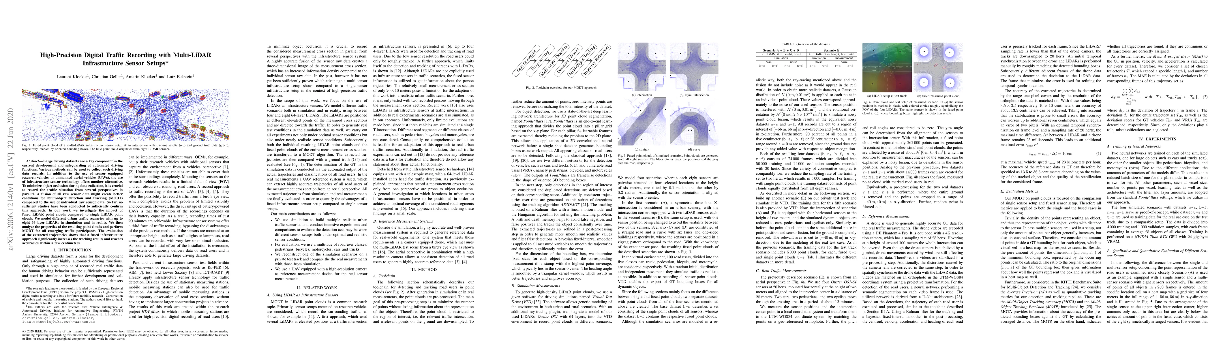 Large driving datasets are a key component in the current development and safeguarding of automated driving functions. Various methods can be used to collect such driving data records. In addition to the use of sensor equipped research vehicles or unmanned aerial vehicles (UAVs), the use of infrastructure sensor technology offers another alternative. To minimize object occlusion during data collection, it is crucial to record the traffic situation from several perspectives in parallel. A fusion of all raw sensor data might create better conditions for multi-object detection and tracking (MODT) compared to the use of individual raw sensor data. So far, no sufficient studies have been conducted to sufficiently confirm this approach. In our work we investigate the impact of fused LiDAR point clouds compared to single LiDAR point clouds. We model different urban traffic scenarios with up to eight 64-layer LiDARs in simulation and in reality. We then analyze the properties of the resulting point clouds and perform MODT for all emerging traffic participants. The evaluation of the extracted trajectories shows that a fused infrastructure approach significantly increases the tracking results and reaches accuracies within a few centimeters.