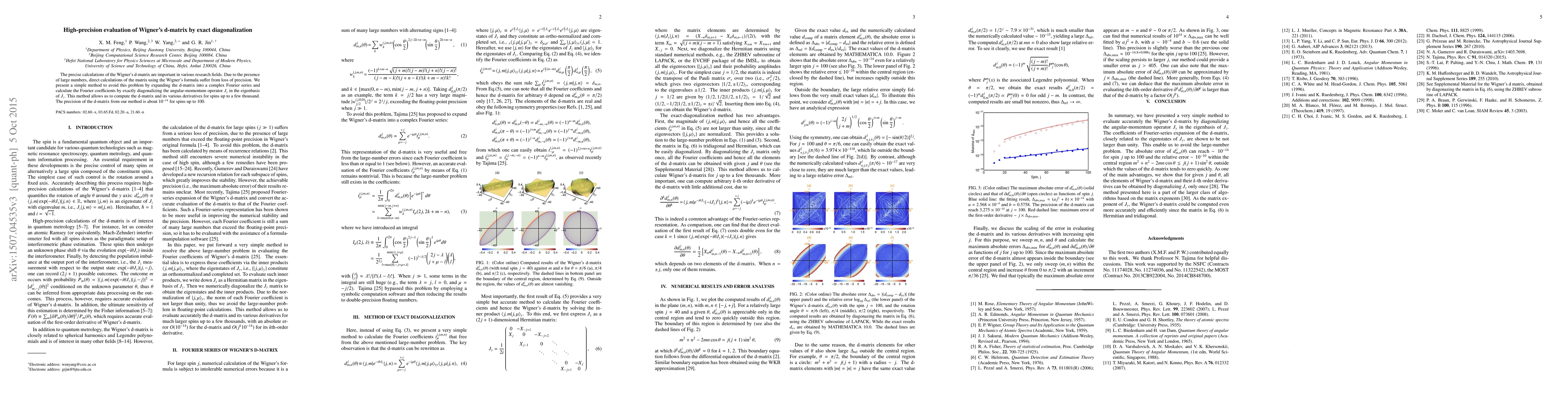 The precise calculations of the Wigner's d-matrix are important in various research fields. Due to the presence of large numbers, direct calculations of the matrix using the Wigner's formula suffer from loss of precision. We present a simple method to avoid this problem by expanding the d-matrix into a complex Fourier series and calculate the Fourier coefficients by exactly diagonalizing the angular-momentum operator $J_{y}$ in the eigenbasis of $J_{z}$. This method allows us to compute the d-matrix and its various derivatives for spins up to a few thousand. The precision of the d-matrix from our method is about $10^{-14}$ for spins up to $100$.