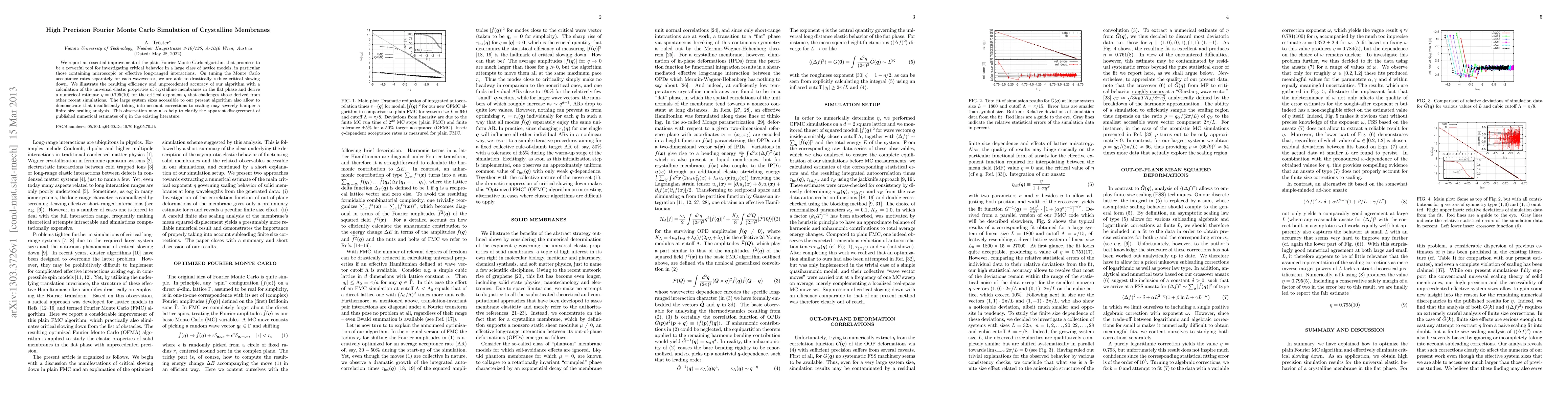 This paper presents a refined Fourier Monte Carlo algorithm that significantly enhances the investigation of critical behavior in lattice models, particularly those with long-range interactions. The authors demonstrate improved efficiency and accuracy by tuning acceptance rates for each wave vector, providing a new estimate of the critical exponent eta for crystalline membranes.