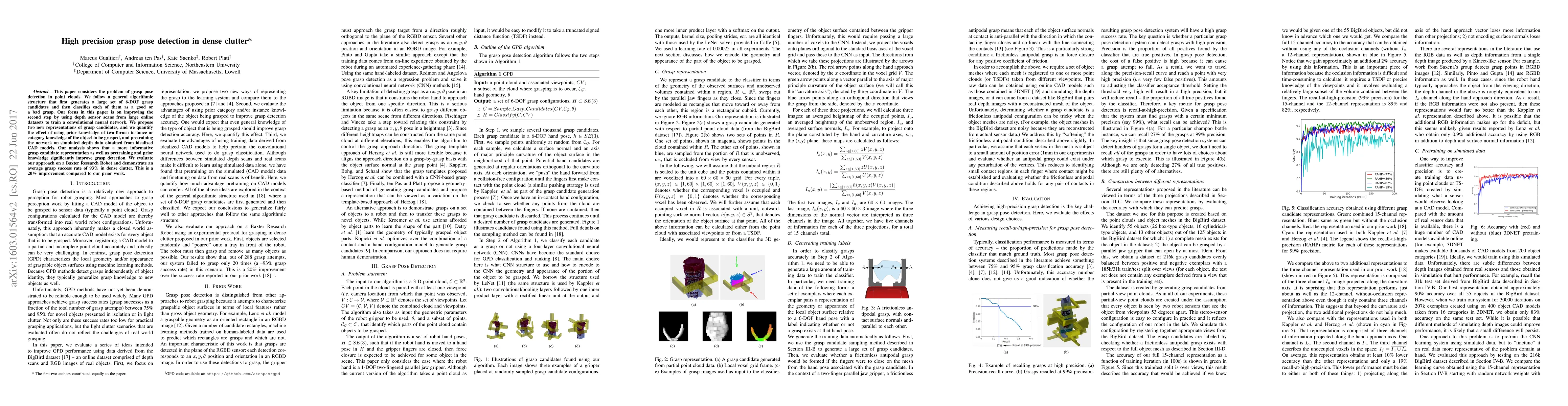 This paper enhances grasp pose detection in cluttered environments by training a convolutional neural network using depth sensor scans. It introduces new grasp candidate representations and leverages prior knowledge, achieving a 93% success rate on a Baxter robot, a 20% improvement over previous methods.