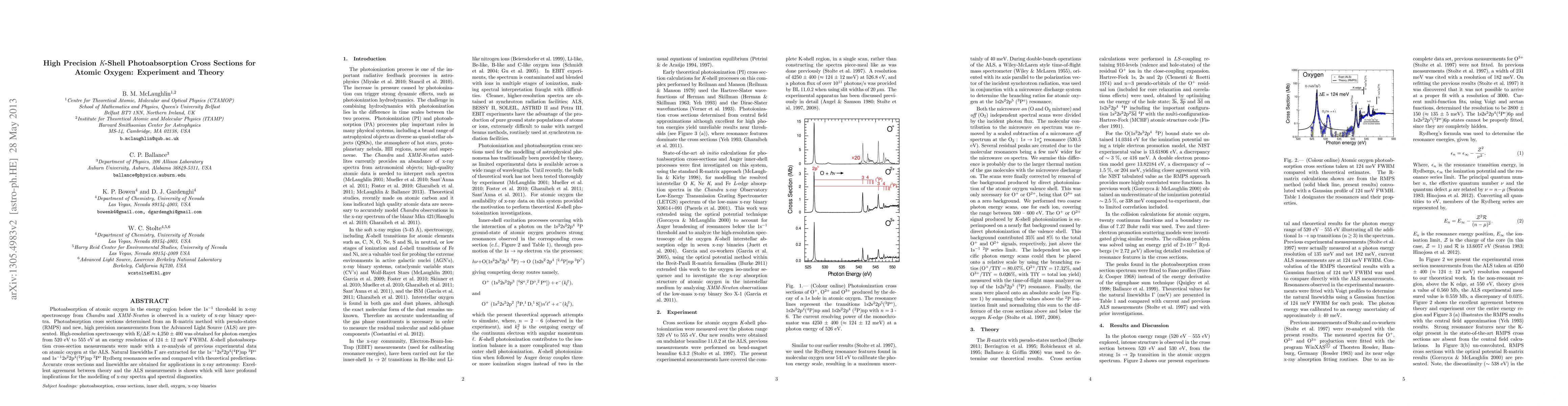 Photoabsorption of atomic oxygen in the energy region below the $\rm 1s^{-1}$ threshold in x-ray spectroscopy from {\it Chandra} and {\it XMM-Newton} is observed in a variety of x-ray binary spectra. Photoabsorption cross sections determined from an R-matrix method with pseudo-states (RMPS) and new, high precision measurements from the Advanced Light Source (ALS) are presented. High-resolution spectroscopy with E/$\Delta$E $\approx$ 4,250 $\pm$ 400 was obtained for photon energies from 520 eV to 555 eV at an energy resolution of 124 $\pm$ 12 meV FWHM. {\it K}-shell photoabsorption cross-section measurements were made with a re-analysis of previous experimental data on atomic oxygen at the ALS. Natural linewidths $\Gamma$ are extracted for the $\rm 1s^{-1}2s^22p^4 (^4P)np ^3P^{\circ}$ and $\rm 1s^{-1}2s^22p^4(^2P)np ~^3P^{\circ}$ Rydberg resonances series and compared with theoretical predictions. Accurate cross sections and linewidths are obtained for applications in x-ray astronomy. Excellent agreement between theory and the ALS measurements is shown which will have profound implications for the modelling of x-ray spectra and spectral diagnostics.