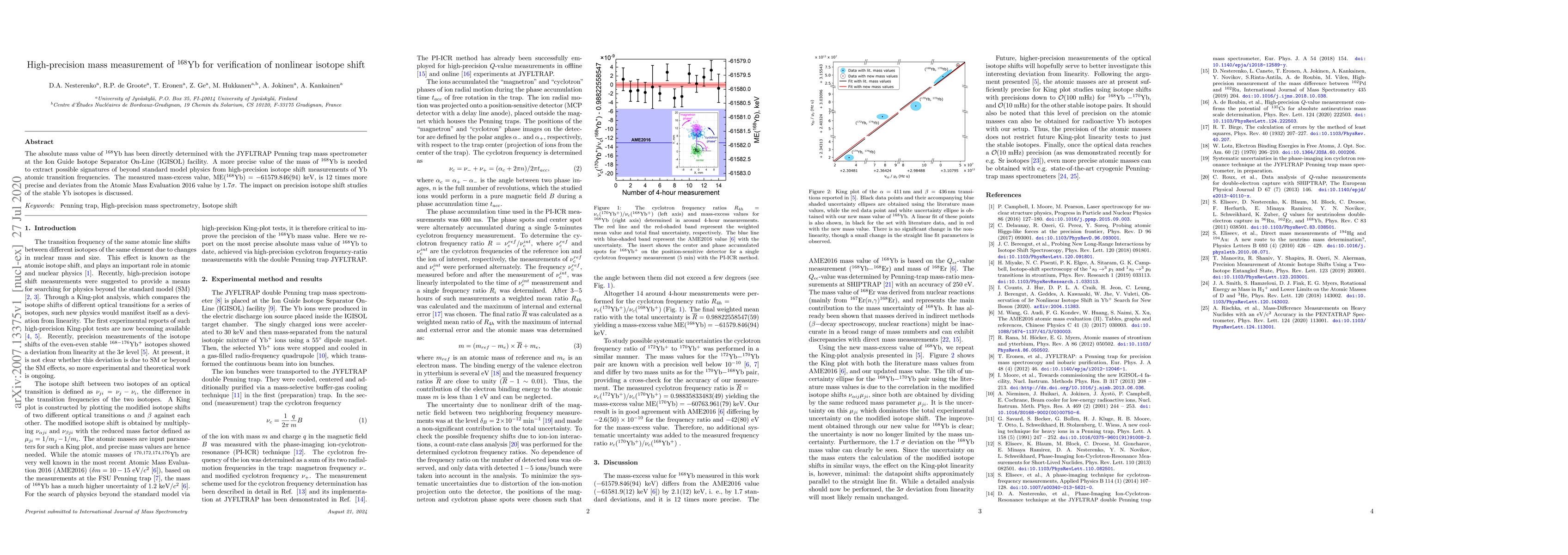 This study reports a highly precise mass measurement of $^{168}$Yb using the JYFLTRAP Penning trap, achieving a mass-excess value of ME($^{168}$Yb) = $-$61579.846(94) keV, which is 12 times more accurate than previous values. This improved precision is crucial for extracting potential signatures of beyond standard model physics from isotope shift studies.