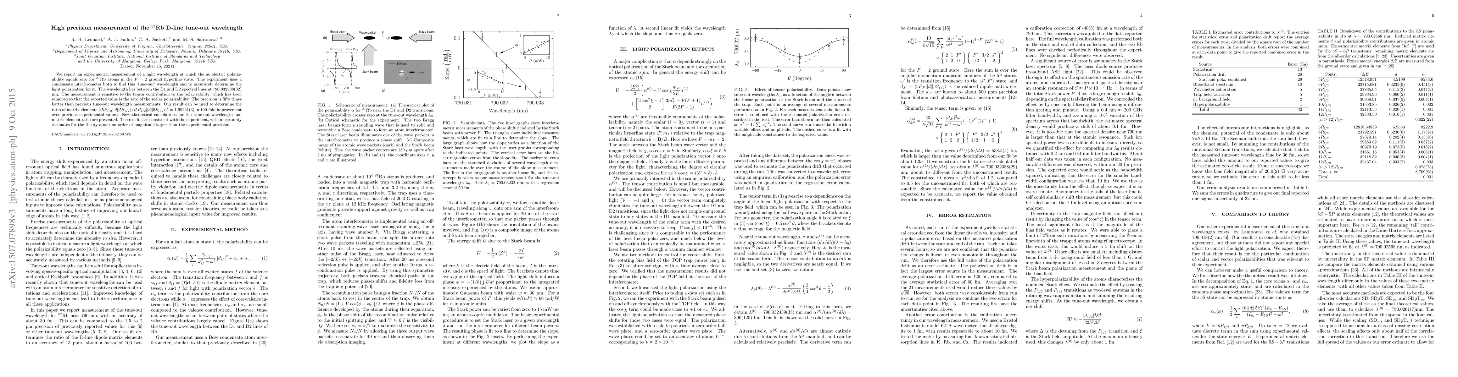 This paper reports a high-precision measurement of the 87Rb D-line tune-out wavelength at 790.03235(3) nm, achieving a fifty-fold improvement in precision over previous measurements. The experiment also determines a matrix element ratio with a 100-fold improvement, consistent with theoretical predictions.
