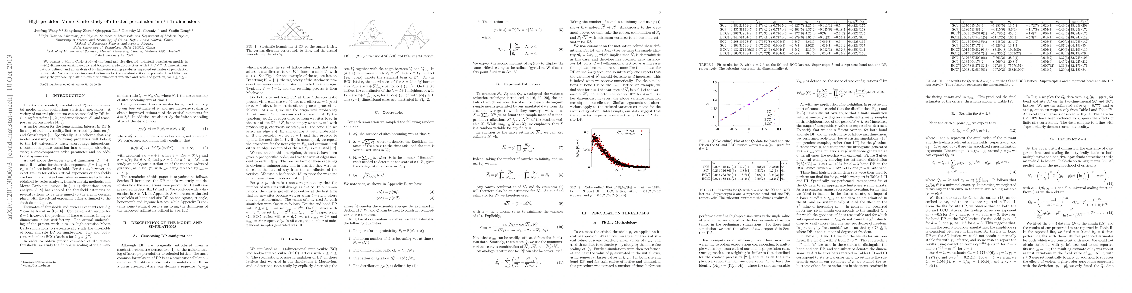 This paper conducts a high-precision Monte Carlo study on directed percolation models in $(d+1)$ dimensions, yielding improved estimates for percolation thresholds and critical exponents. It also examines the probability distributions of wet sites and radius of gyration across dimensions $2 \leq d \leq 7$.