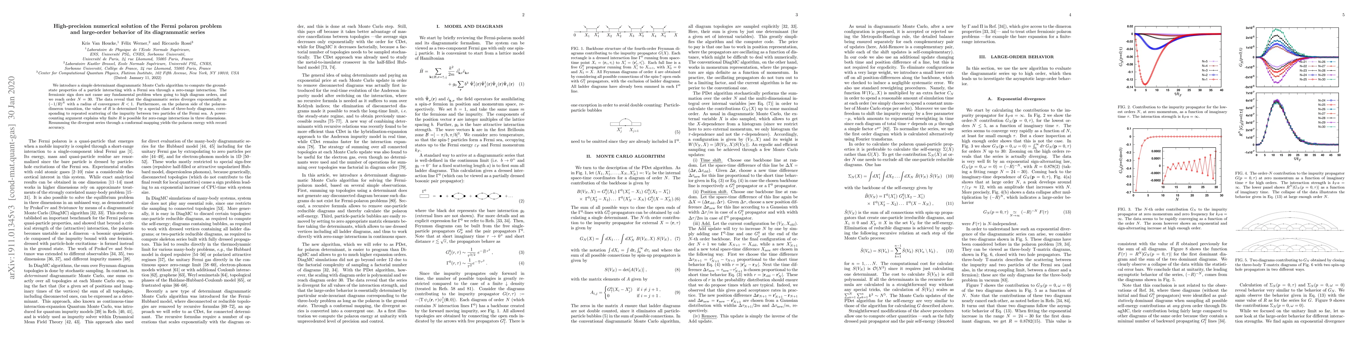 Researchers developed a new algorithm to solve the Fermi polaron problem, finding that high-order interactions lead to an exponentially divergent series with a radius of convergence less than 1, and resumming this series yields accurate polaron energy calculations.