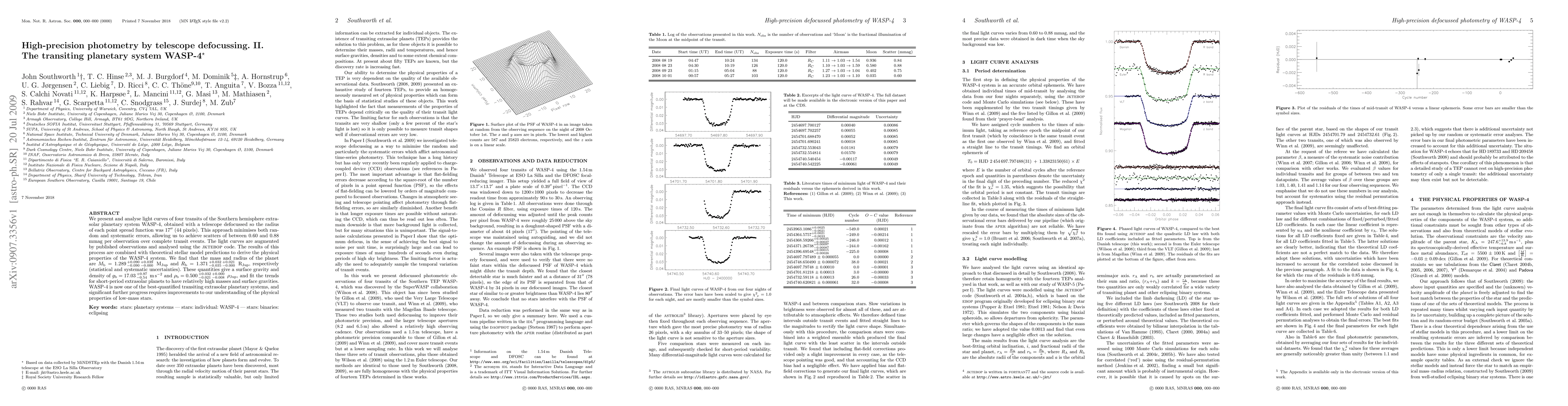 This study uses high-precision photometry from telescope defocussing to analyze light curves of four transits of the WASP-4 planetary system, achieving minimal error scatters. The derived physical properties of the planet show it to have a mass and radius fitting typical trends for short-period extrasolar planets, making WASP-4 one of the best-quantified systems.