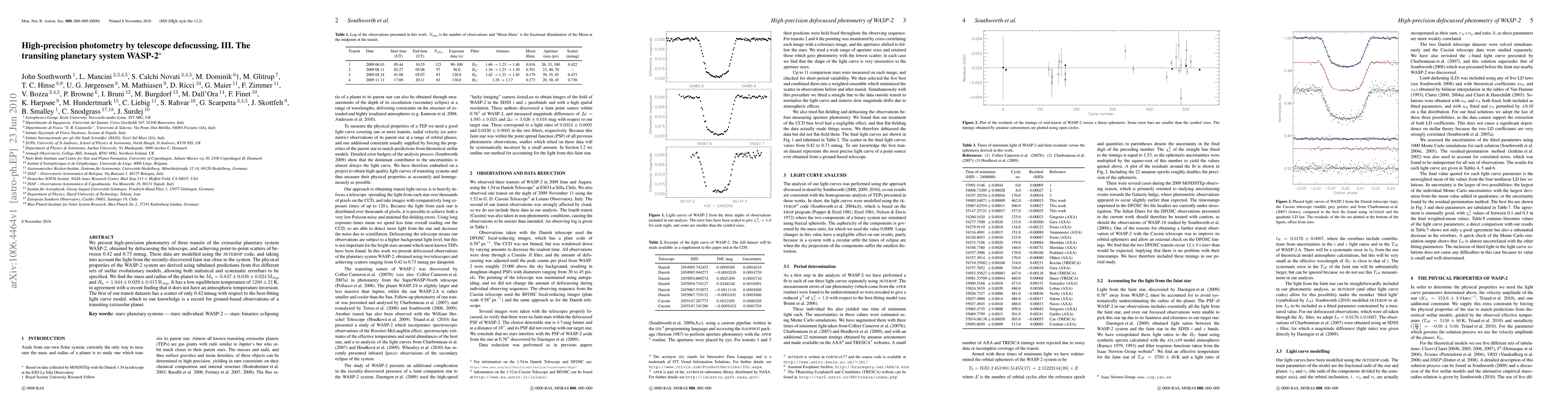 This paper reports high-precision photometry of three transits of the WASP-2 planetary system using telescope defocussing, achieving unprecedented scatters of 0.42 to 0.73 mmag. The study derives the planet's mass and radius, finding M_b = 0.847 +/- 0.038 +/- 0.024 Mjup and R_b = 1.044 +/- 0.029 +/- 0.015 Rjup, and confirms its low equilibrium temperature of 1280 +/- 21 K.