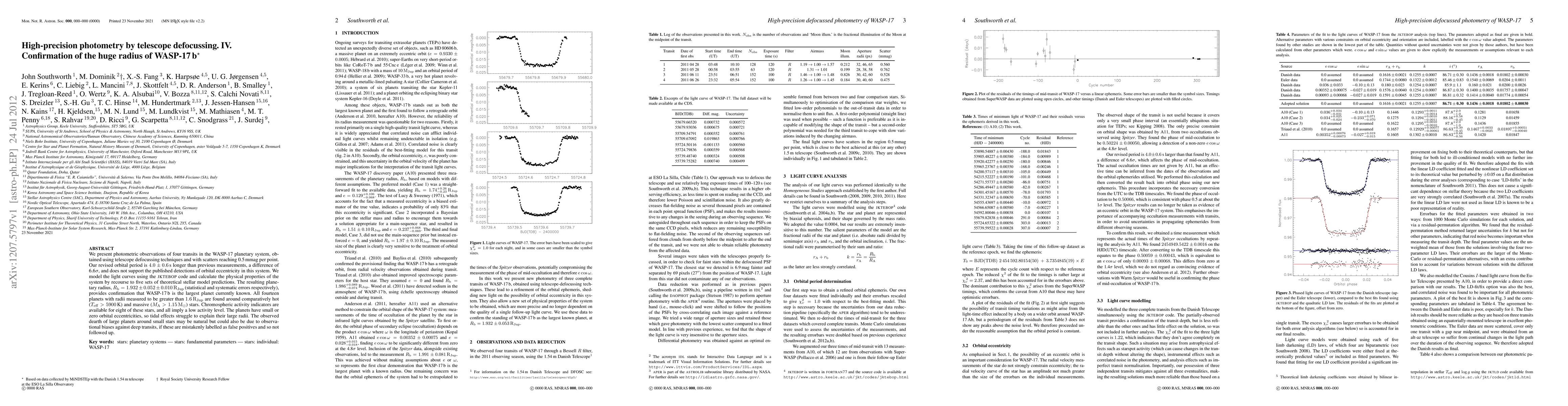 We present photometric observations of four transits in the WASP-17 planetary system, obtained using telescope defocussing techniques and with scatters reaching 0.5 mmag per point. Our revised orbital period is 4.0 +/- 0.6 s longer than previous measurements, a difference of 6.6 sigma, and does not support the published detections of orbital eccentricity in this system. We model the light curves using the JKTEBOP code and calculate the physical properties of the system by recourse to five sets of theoretical stellar model predictions. The resulting planetary radius, Rb = 1.932 +/- 0.052 +/- 0.010 Rjup (statistical and systematic errors respectively), provides confirmation that WASP-17b is the largest planet currently known. All fourteen planets with radii measured to be greater than 1.6 Rjup are found around comparatively hot (Teff > 5900 K) and massive (MA > 1.15 Msun) stars. Chromospheric activity indicators are available for eight of these stars, and all imply a low activity level. The planets have small or zero orbital eccentricities, so tidal effects struggle to explain their large radii. The observed dearth of large planets around small stars may be natural but could also be due to observational biases against deep transits, if these are mistakenly labelled as false positives and so not followed up.