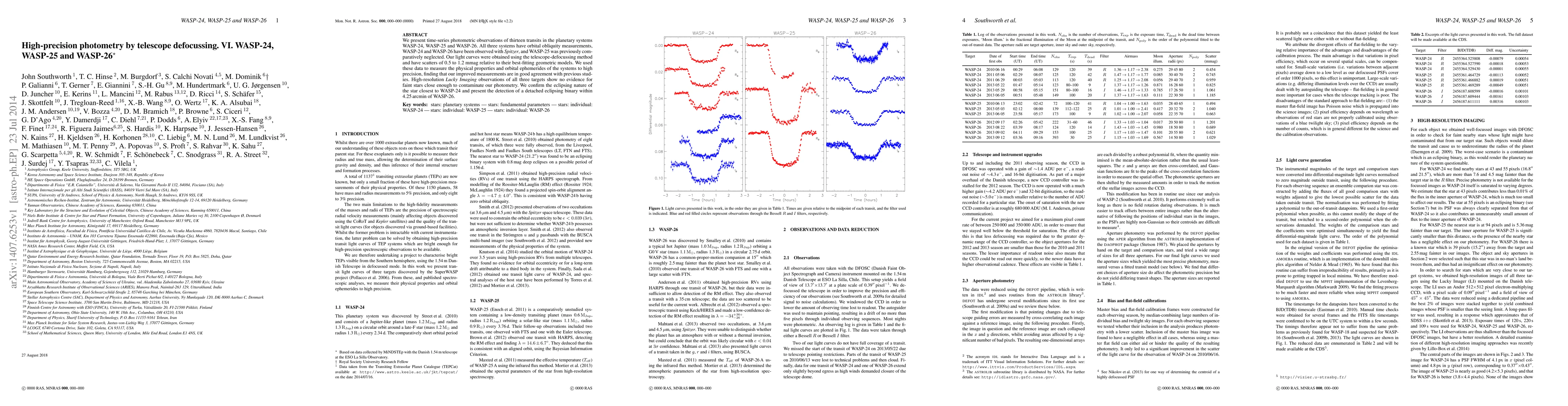 Researchers observed 13 transits in three exoplanet systems using a new telescope defocussing method, achieving high precision photometry with minimal scatter. They confirmed the eclipsing nature of some stars and discovered a detached binary within WASP-26's system.