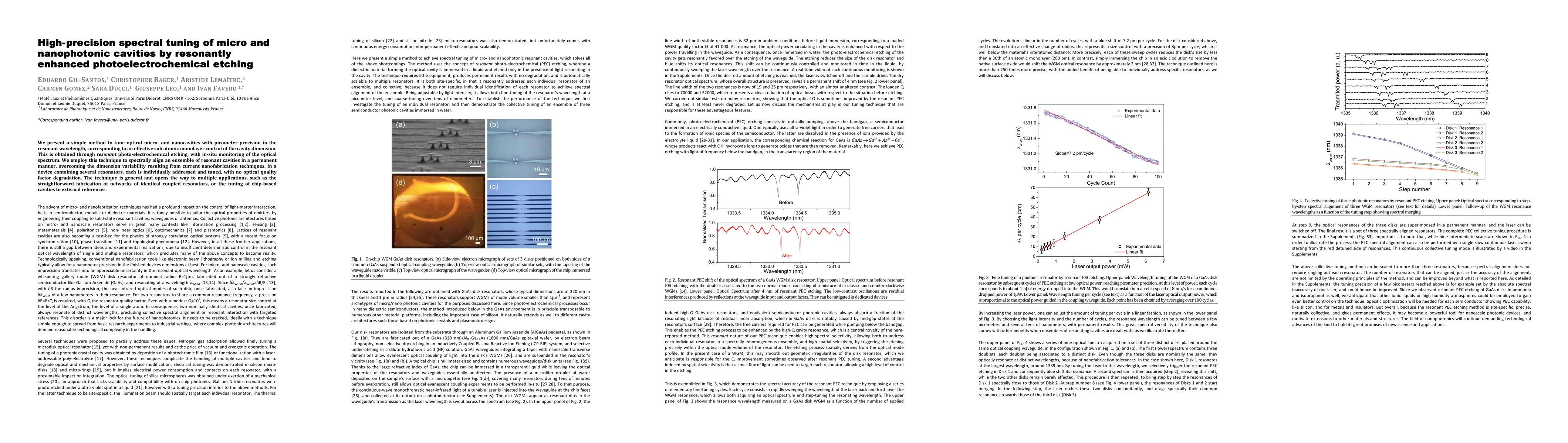 This paper introduces a method for high-precision tuning of micro and nanophotonic cavities using resonantly enhanced photoelectrochemical etching, achieving picometer-level precision and enabling permanent alignment of cavity dimensions. The technique allows individual tuning of multiple resonators without degrading optical quality.