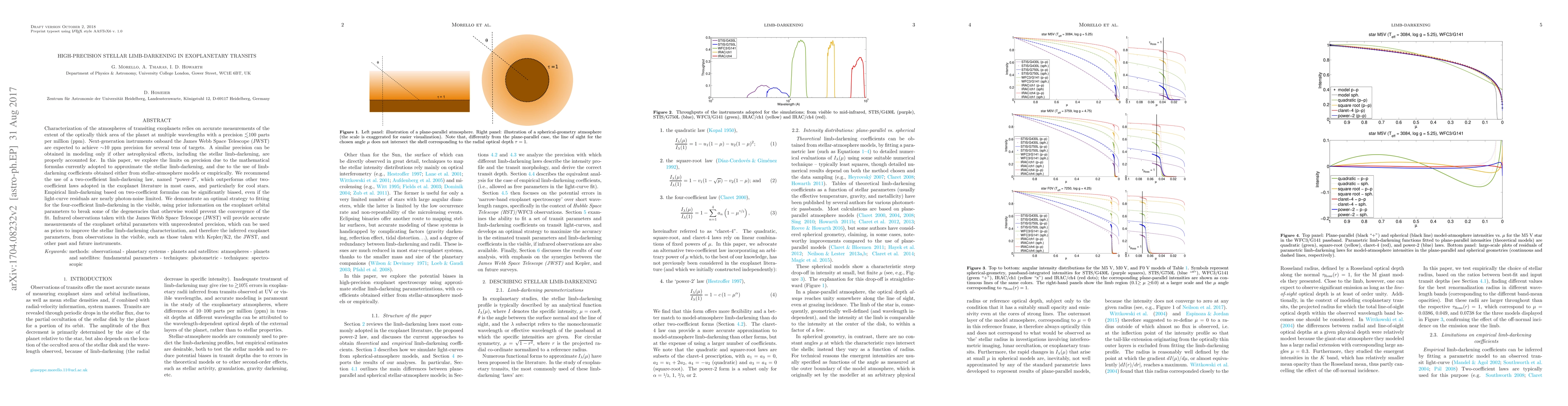 Characterization of the atmospheres of transiting exoplanets relies on accurate measurements of the extent of the optically thick area of the planet at multiple wavelengths with a precision $\lesssim$100 parts per million (ppm). Next-generation instruments onboard the James Webb Space Telescope (JWST) are expected to achieve $\sim$10 ppm precision for several tens of targets. A similar precision can be obtained in modelling only if other astrophysical effects, including the stellar limb-darkening, are accounted for properly. In this paper, we explore the limits on precision due to the mathematical formulas currently adopted to approximate the stellar limb-darkening, and to the use of limb-darkening coefficients obtained either from stellar-atmosphere models or empirically. We propose a new limb-darkening law with two coefficients, `power-2', which outperforms other two-coefficient laws adopted in the literature in most cases, and particularly for cool stars. Empirical limb-darkening based on two-coefficient formulas can be significantly biased, even if the light-curve residuals are nearly photon-noise limited. We demonstrate an optimal strategy to fitting for the four-coefficients limb-darkening in the visible, using prior information on the exoplanet orbital parameters to break some of the degeneracies that otherwise would prevent the convergence of the fit. Infrared observations taken with the James Webb Space Telescope (JWST) will provide accurate measurements of the exoplanet orbital parameters with unprecedented precision, which can be used as priors to improve the stellar limb-darkening characterization, and therefore the inferred exoplanet parameters, from observations in the visible, such as those taken with Kepler/K2, JWST, other past and future instruments.