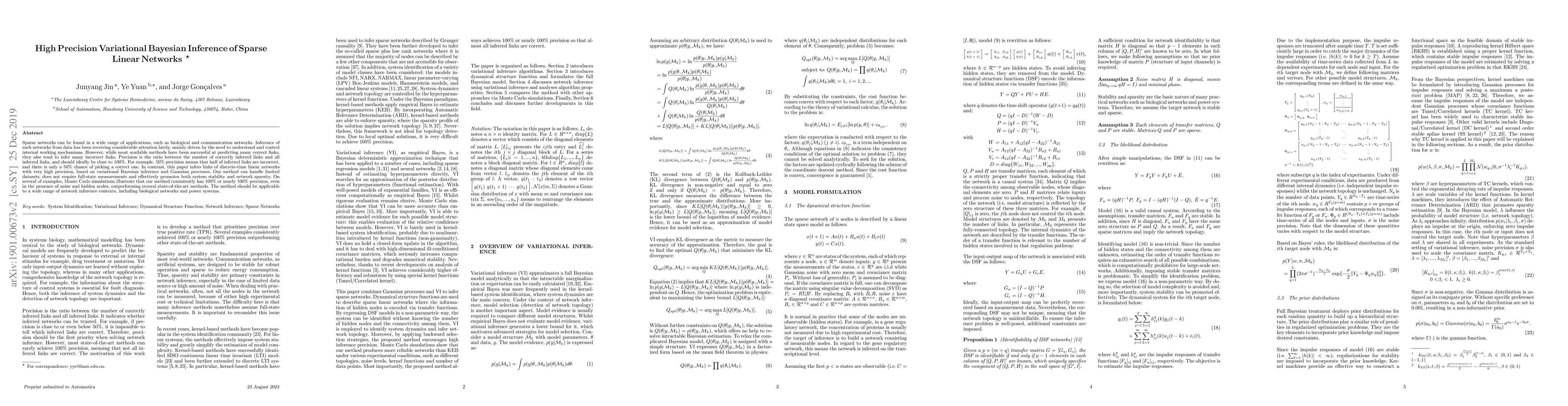 This paper develops a method for inferring sparse linear networks with high precision using variational Bayesian inference and Gaussian processes. It achieves 100% or nearly 100% precision even in the presence of noise, making it applicable to various network inference contexts.