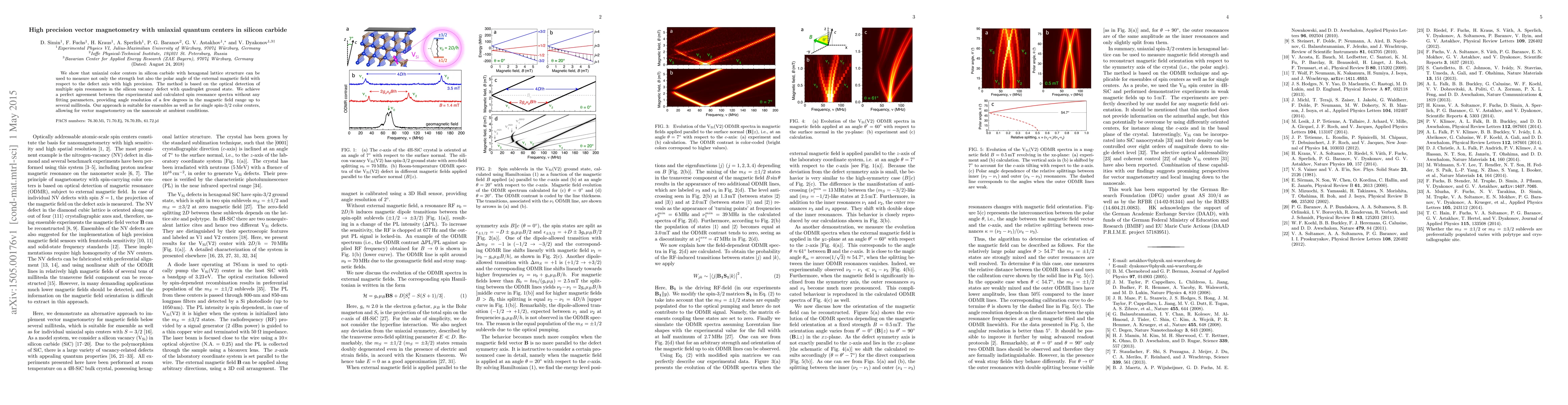 This paper demonstrates high precision vector magnetometry using uniaxial color centers in silicon carbide, achieving angle resolution of a few degrees for magnetic fields up to several millitesla. The method relies on optical detection of multiple spin resonances in silicon vacancy defects, showing perfect agreement between experimental and calculated data.