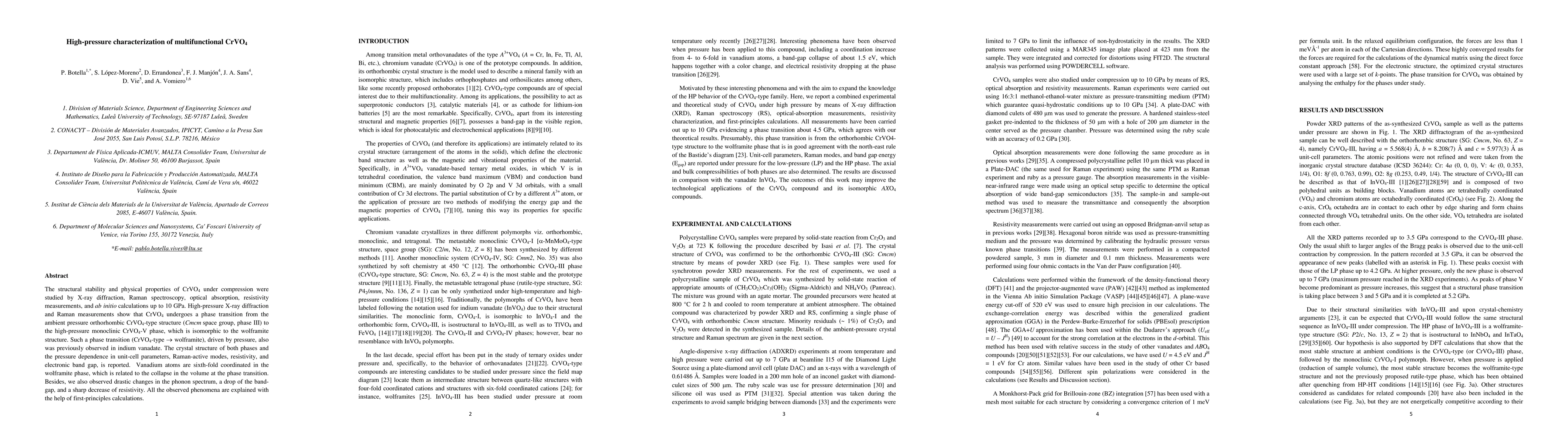 This study investigates the high-pressure behavior of CrVO4 using various techniques, revealing a phase transition from orthorhombic to monoclinic structure, accompanied by significant changes in resistivity, band gap, and phonon spectrum, all explained through first-principles calculations.