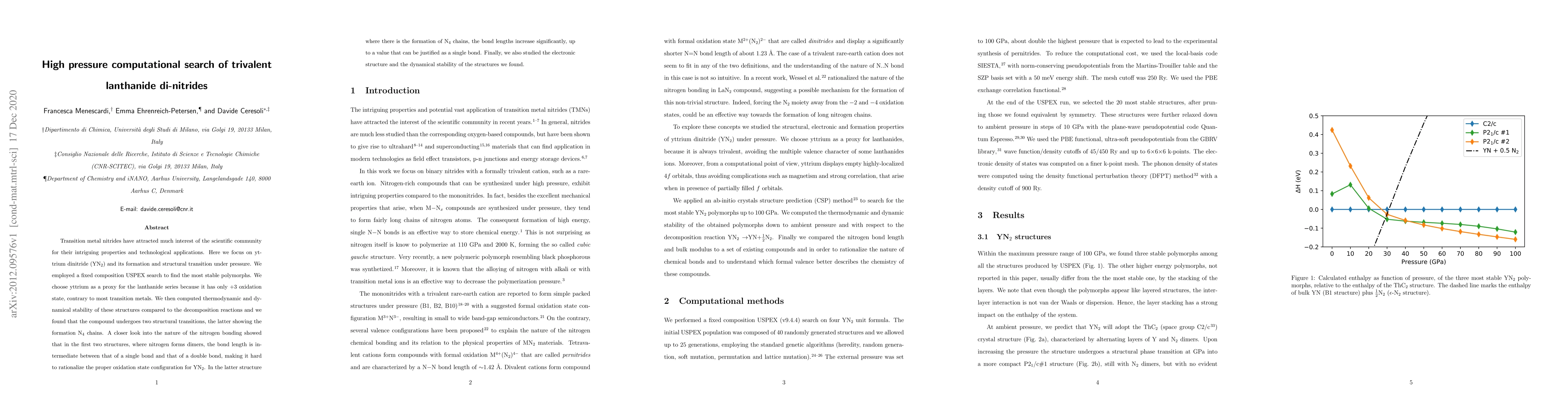Researchers used high-pressure computational methods to study yttrium dinitride (YN2) and found it undergoes two structural transitions under pressure, forming N4 chains in the final structure. The study provides insights into the compound's properties and implications for its technological applications.