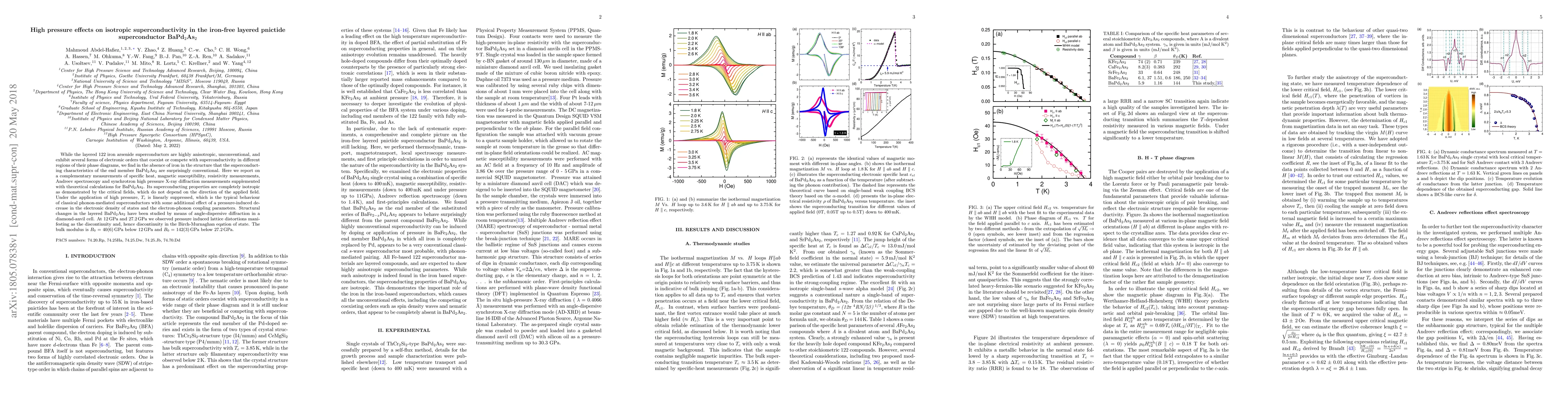 While the layered 122 iron arsenide superconductors are highly anisotropic, unconventional, and exhibit several forms of electronic orders that coexist or compete with superconductivity in different regions of their phase diagrams, we find in the absence of iron in the structure that the superconducting characteristics of the end member BaPd2As2 are surprisingly conventional. Here we report on complementary measurements of specific heat, magnetic susceptibility, resistivity measurements, Andreev spectroscopy, and synchrotron high pressure x-ray diffraction measurements supplemented with theoretical calculations for BaPd2As2. Its superconducting properties are completely isotropic as demonstrated by the critical fields, which do not depend on the direction of the applied field. Under the application of high pressure, Tc is linearly suppressed, which is the typical behavior of classical phonon-mediated superconductors with some additional effect of a pressure-induced decrease in the electronic density of states and the electron-phonon coupling parameters. Structural changes in the layered BaPd2As2 have been studied by means of angle-dispersive diffraction in a diamond-anvil cell. At 12 GPa and 24.2 GPa we observed pressure induced lattice distortions manifesting as the discontinuity and, hence discontinuity in the Birch-Murnaghan equation of state. The bulk modulus is B0=40(6) GPa below 12 GPa and B0=142(3) GPa below 27.2 GPa.