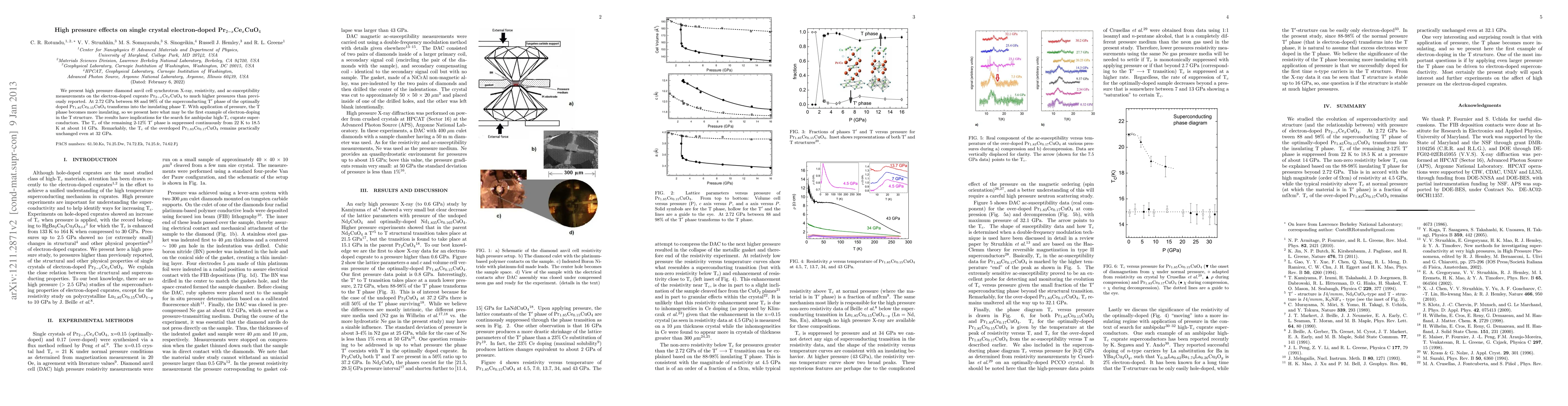 We present high pressure diamond anvil cell synchrotron X-ray, resistivity, and ac-susceptibility measurements on electron-doped cuprate Pr$_{2-x}$Ce$_{x}$CuO$_{4}$ to much higher pressures than previously reported. At 2.72 GPa between 88 and 98$%$ of the superconducting T$^\prime$ phase \cite{Tprime} of the optimally doped Pr$_{1.85}$Ce$_{0.15}$CuO$_{4}$ transforms into the insulating phase T. The T$_{c}$ of the remaining 2-12$%$ T$^\prime$ phase is suppressed continuously from 22 K to 18.5 K at about 14 GPa. Remarkably, the T$_{c}$ of the over doped Pr$_{1.83}$Ce$_{0.17}$CuO$_{4}$ remains practically unchanged even at 32 GPa. This behavior of the electron-doped cuprate contrasts with that of the hole-doped cuprate for which T$_{c}$ is first substantially enhanced with applied pressure.