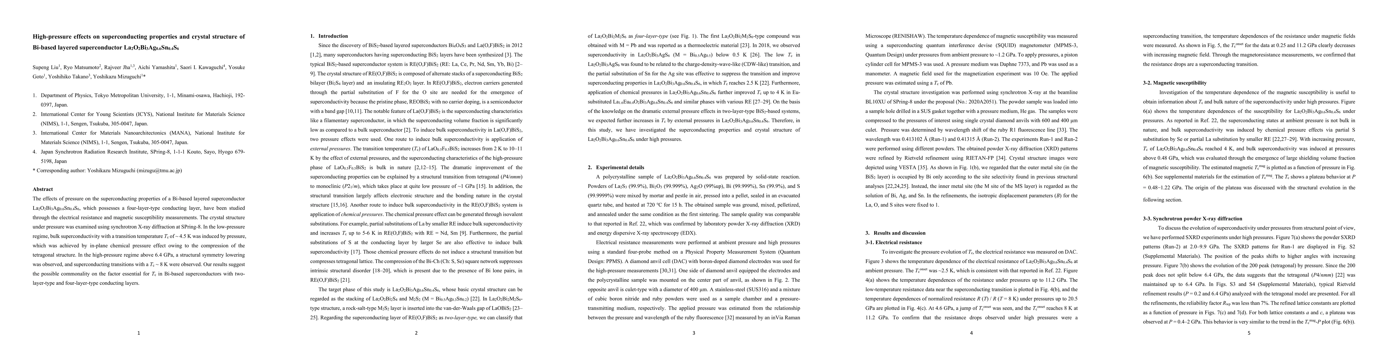This study investigates the impact of pressure on the superconducting properties and crystal structure of the Bi-based layered superconductor La2O2Bi3Ag0.6Sn0.4S6. High pressure induces bulk superconductivity up to Tc ~ 8 K, with structural changes observed above 6.4 GPa, suggesting shared factors influencing Tc in different Bi-based superconductors.