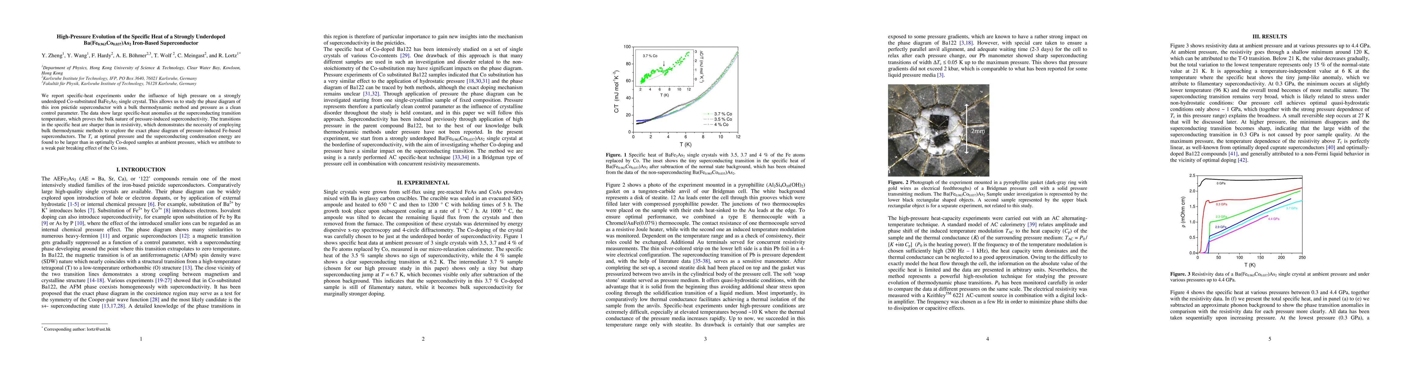 This study investigates the specific heat of a strongly underdoped Ba(Fe0.963Co0.037)As2 superconductor under high-pressure conditions, revealing significant anomalies at the superconducting transition temperature and demonstrating the bulk nature of pressure-induced superconductivity. The sharper transitions in specific heat compared to resistivity highlight the importance of bulk thermodynamic methods for understanding the phase diagram of Fe-based superconductors.