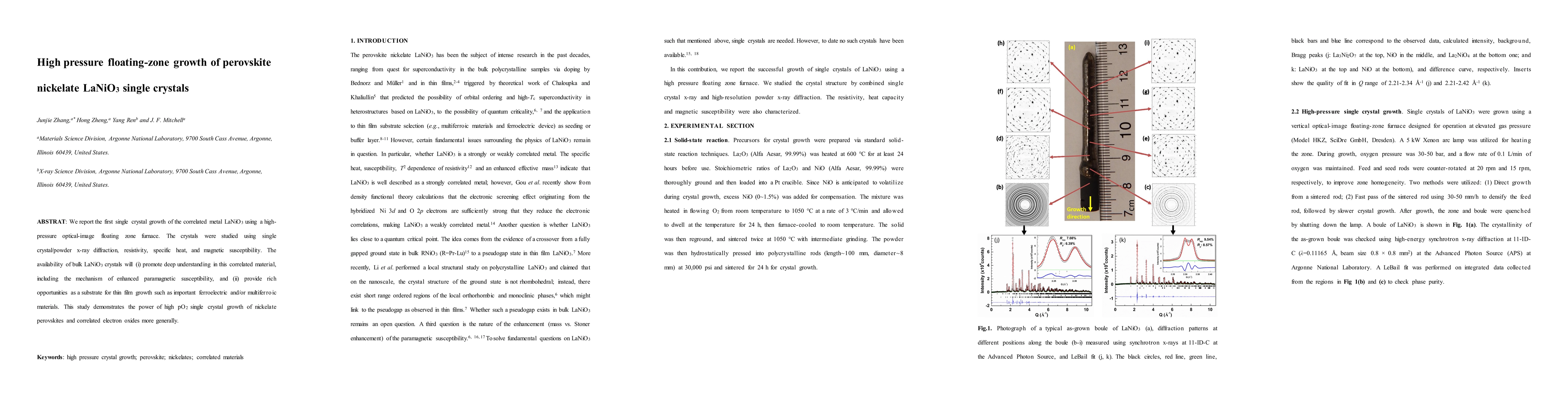 This paper reports the first successful growth of LaNiO3 single crystals using high-pressure optical-image floating zone technique, enabling detailed studies on its correlated metal properties. The availability of these crystals is expected to enhance understanding of its enhanced paramagnetic susceptibility and serve as substrates for growing thin films of ferroelectric and multiferroic materials.