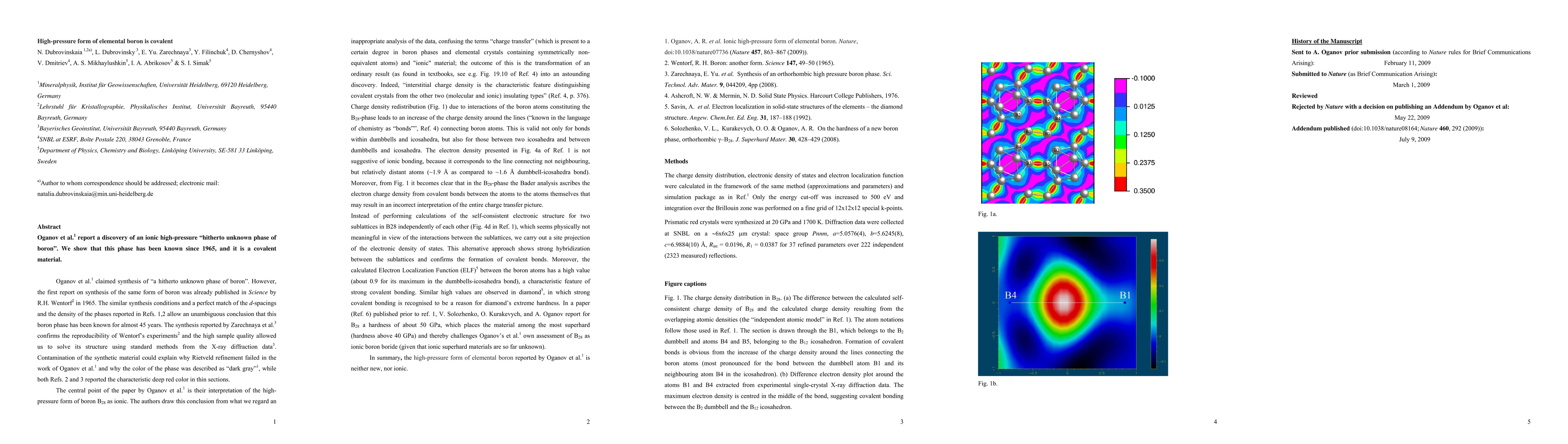Oganov et al report a discovery of an ionic high-pressure /hitherto unknown phase of boron/. We show that this phase has been known since 1965, and it is a covalent material.
