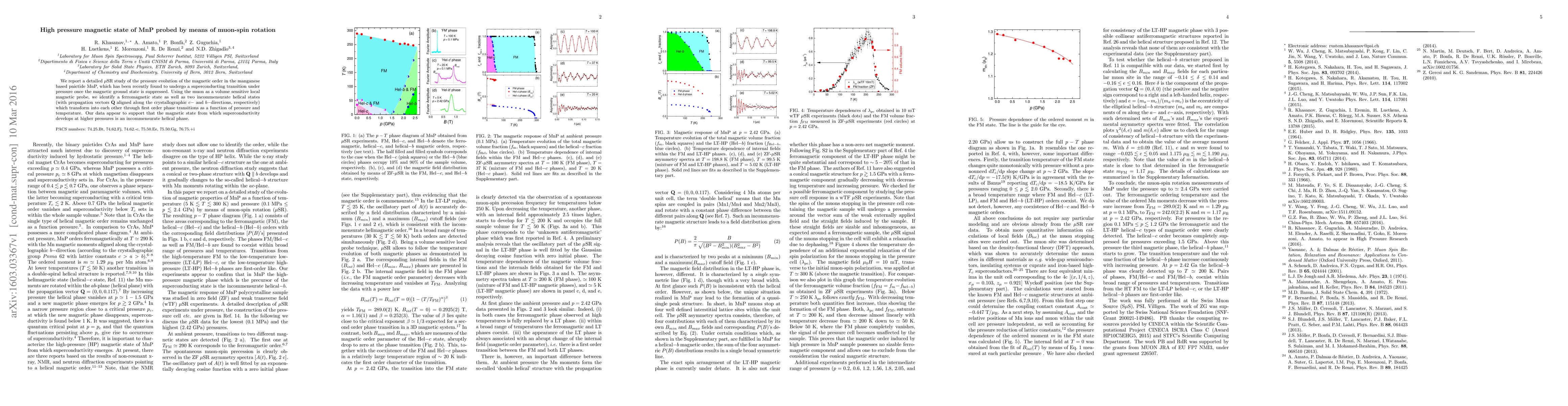 We report a detailed $\mu$SR study of the pressure evolution of the magnetic order in the manganese based pnictide MnP, which has been recently found to undergo a superconducting transition under pressure once the magnetic ground state is suppressed. Using the muon as a volume sensitive local magnetic probe, we identify a ferromagnetic state as well as two incommensurate helical states (with propagation vectors ${\bf Q}$ aligned along the crystallographic $c-$ and $b-$directions, respectively) which transform into each other through first order phase transitions as a function of pressure and temperature. Our data appear to support that the magnetic state from which superconductivity develops at higher pressures is an incommensurate helical phase.