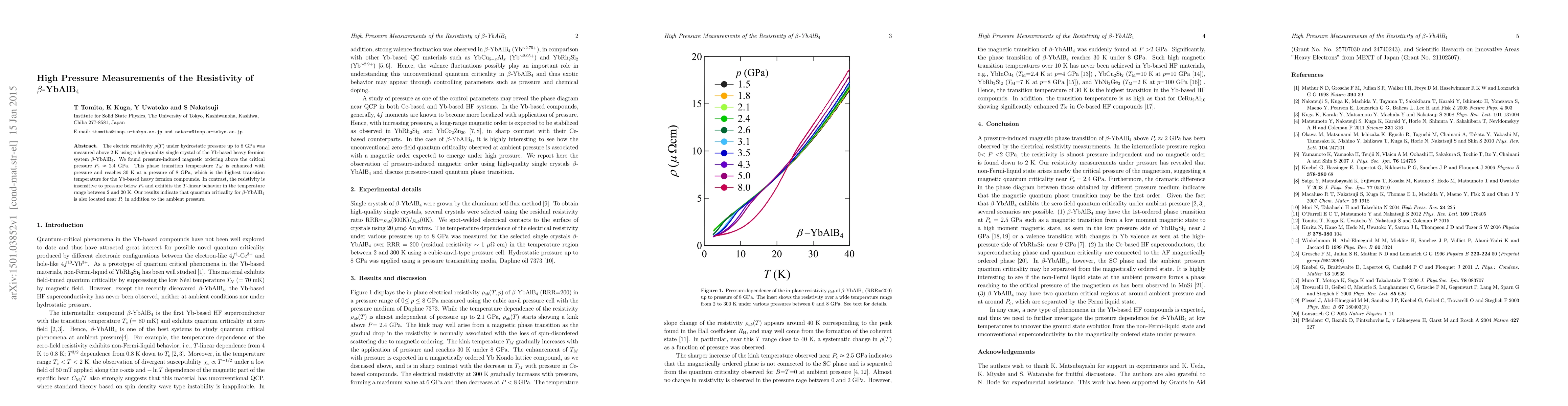 This study measures the resistivity of $\beta$-YbAlB$_4$ under pressure, revealing a magnetic ordering phase transition above 2.4 GPa, with the transition temperature reaching 30 K at 8 GPa, the highest for Yb-based heavy fermion compounds. Below this critical pressure, resistivity shows $T$-linear behavior.