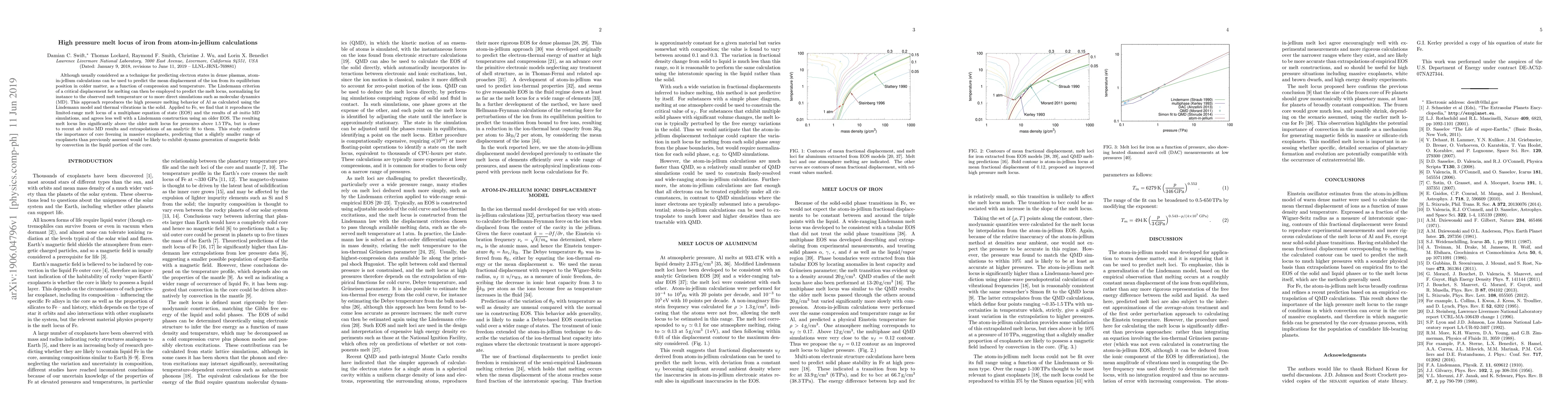 This paper uses atom-in-jellium calculations to predict the high pressure melt locus of iron, finding agreement with recent ab initio MD simulations and suggesting a smaller range of exoplanets with dynamo magnetic fields than previously thought. The method reproduces the melting behavior of Al and shows improved accuracy over older models for pressures above 1.5 TPa.