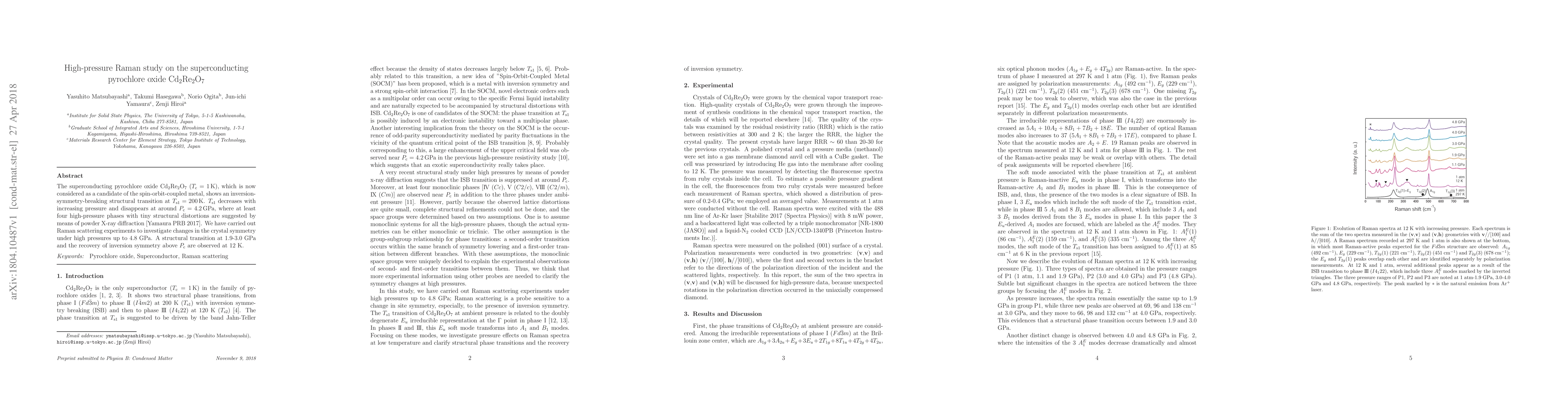 Research on Cd2Re2O7 reveals an inversion-symmetry-breaking structural transition at 200 K that disappears under 4.8 GPa pressure, with Raman scattering experiments confirming a new phase at 12 K.