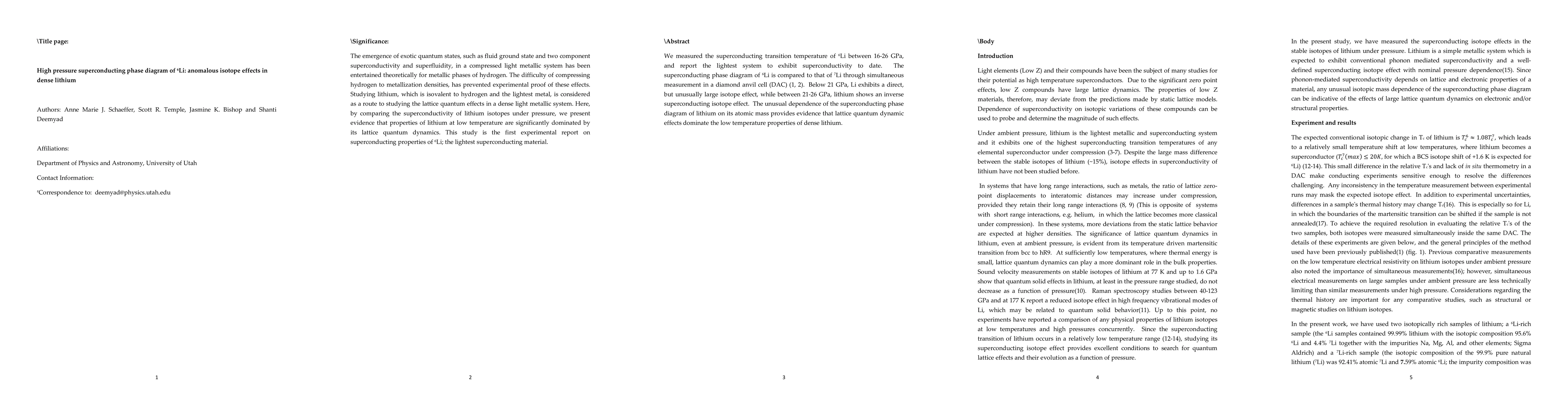 This study reports the superconducting transition temperature of 6Li under high pressure, revealing the lightest system to exhibit superconductivity. The research highlights an unusual isotope effect in lithium, showing a direct effect below 21.5 GPa and an inverse effect above, suggesting quantum solid effects dominate dense lithium's low-temperature properties.