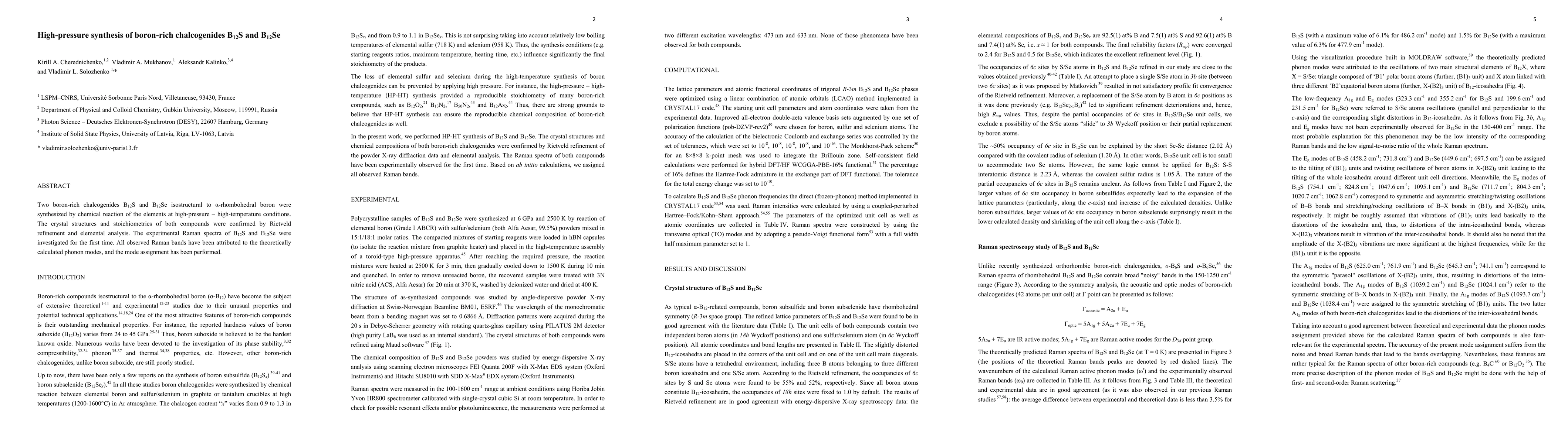 Two boron-rich chalcogenides B12S and B12Se isostructural to {\alpha}-rhombohedral boron were synthesized by chemical reaction of the elements at high-pressure - high-temperature conditions. The crystal structures and stoichiometries of both compounds were confirmed by Rietveld refinement and elemental analysis. The experimental Raman spectra of B12S and B12Se were investigated for the first time. All observed Raman bands have been attributed to the theoretically calculated phonon modes, and the mode assignment has been performed.