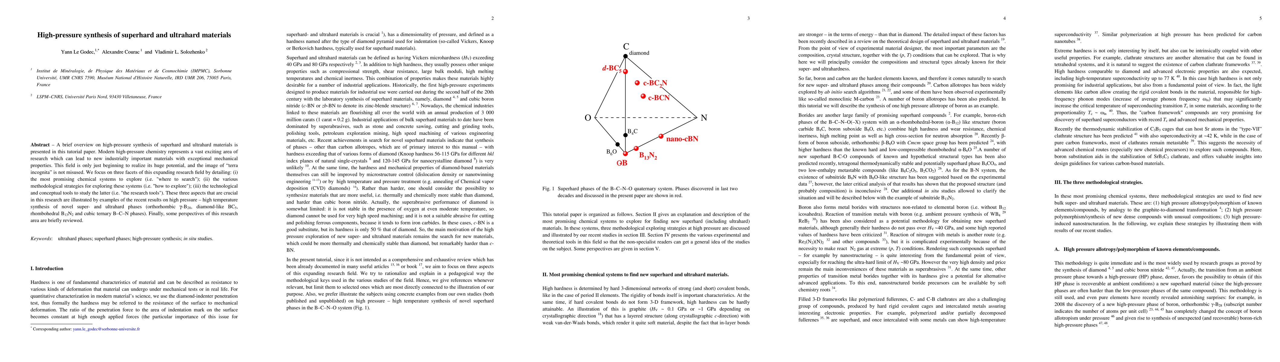 This paper provides an overview of high-pressure synthesis techniques for creating superhard and ultrahard materials, focusing on promising chemical systems, methodological strategies, and research tools. It highlights recent advancements in synthesizing novel phases like orthorhombic gamma-B28 and diamond-like BC5, and discusses the potential future directions of this research field.