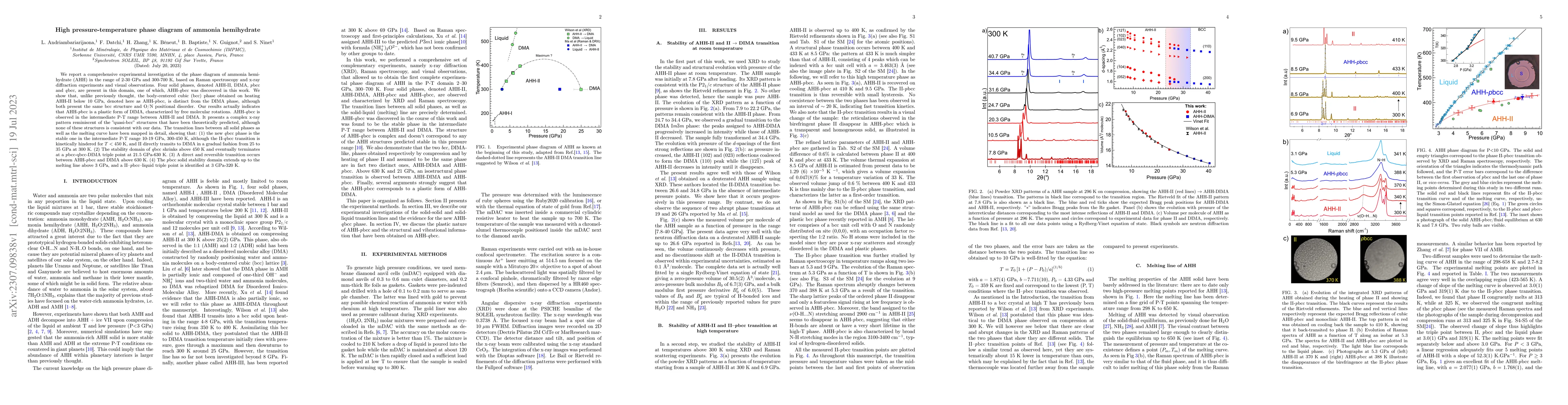 This paper presents an experimental study of ammonia hemihydrate's phase diagram under high pressure and temperature, identifying four solid phases including a newly discovered qbcc phase. The study reveals distinct behaviors of previously thought-similar phases and maps detailed transition lines, highlighting the stability of the qbcc phase in specific pressure-temperature ranges.