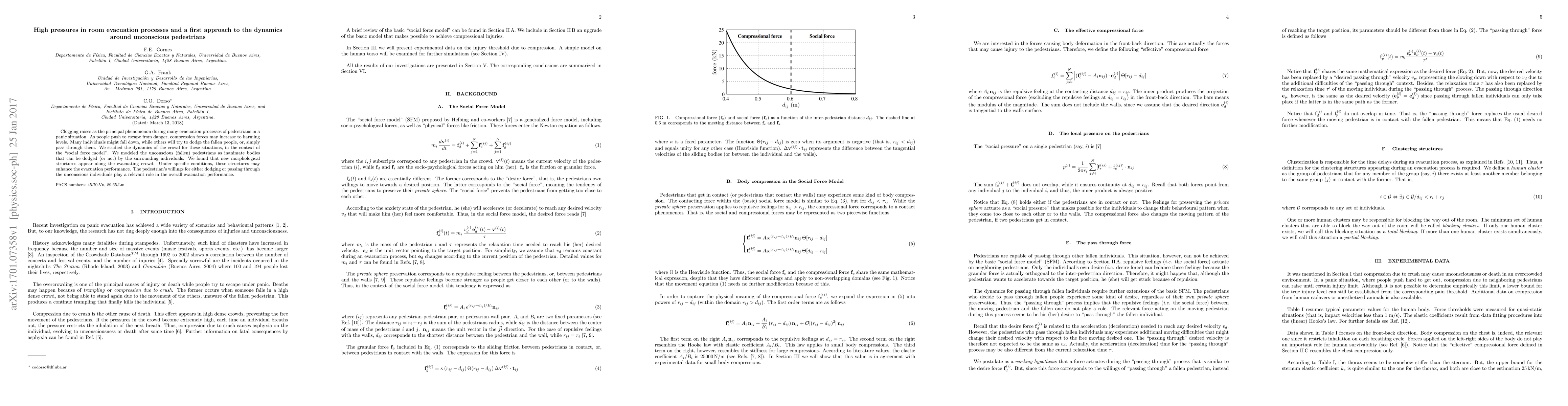 Clogging raises as the principal phenomenon during many evacuation processes of pedestrians in a panic situation. As people push to escape from danger, compression forces may increase to harming levels. Many individuals might fall down, while others will try to dodge the fallen people, or, simply pass through them. We studied the dynamics of the crowd for these situations, in the context of the "social force model". We modeled the unconscious (fallen) pedestrians as inanimate bodies that can be dodged (or not) by the surrounding individuals. We found that new morphological structures appear along the evacuating crowd. Under specific conditions, these structures may enhance the evacuation performance. The pedestrian's willings for either dodging or passing through the unconscious individuals play a relevant role in the overall evacuation performance.