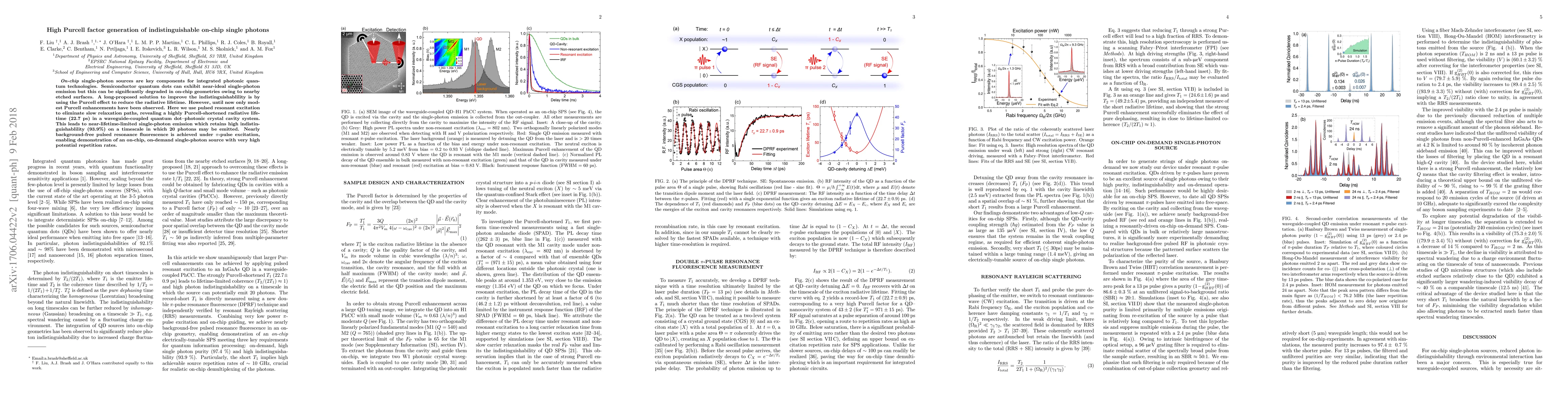 This paper demonstrates a highly Purcell-factor enhanced single-photon source using a waveguide-coupled quantum dot in a photonic crystal cavity, achieving a shortened radiative lifetime and high indistinguishability, enabling on-chip, on-demand photon emission with potential for high repetition rates.