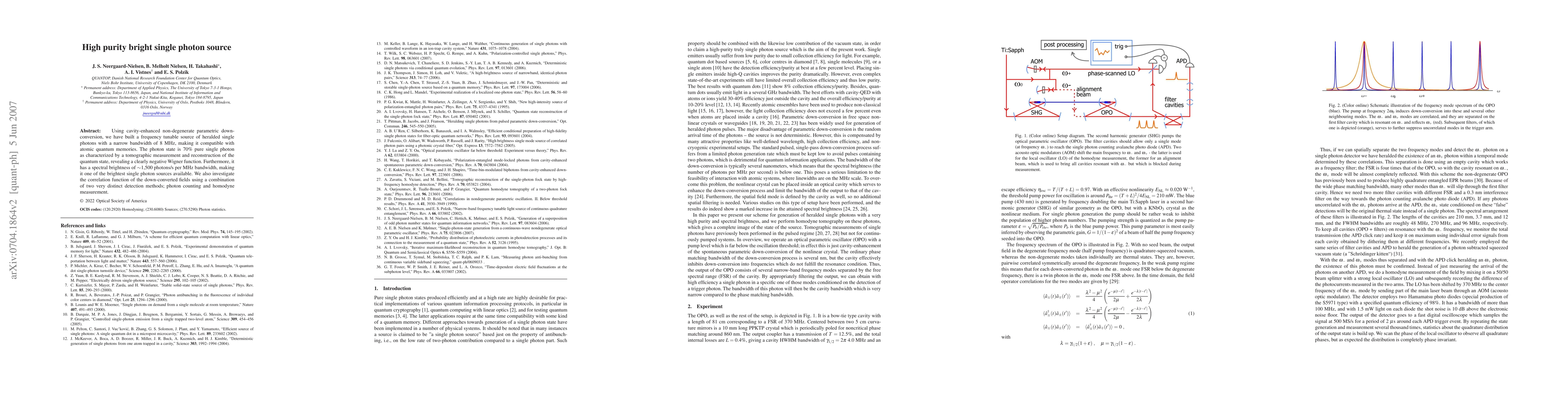 This research develops a high purity, frequency tunable single photon source via cavity-enhanced non-degenerate parametric downconversion, achieving 70% purity and a brightness of ~1,500 photons/s per MHz, suitable for quantum memories. The study also examines the correlation function of the down-converted fields using photon counting and homodyne measurement.