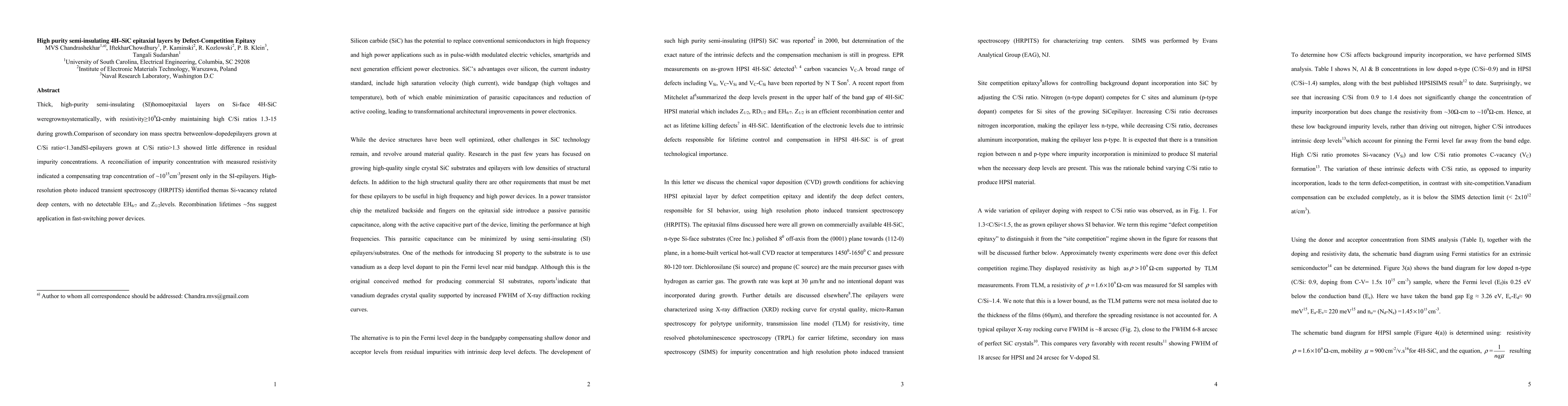 Researchers successfully grew high-purity semi-insulating 4H-SiC epitaxial layers with low defect concentrations, suitable for fast-switching power devices, and identified Si-vacancy related deep centers as the cause of their insulating properties.