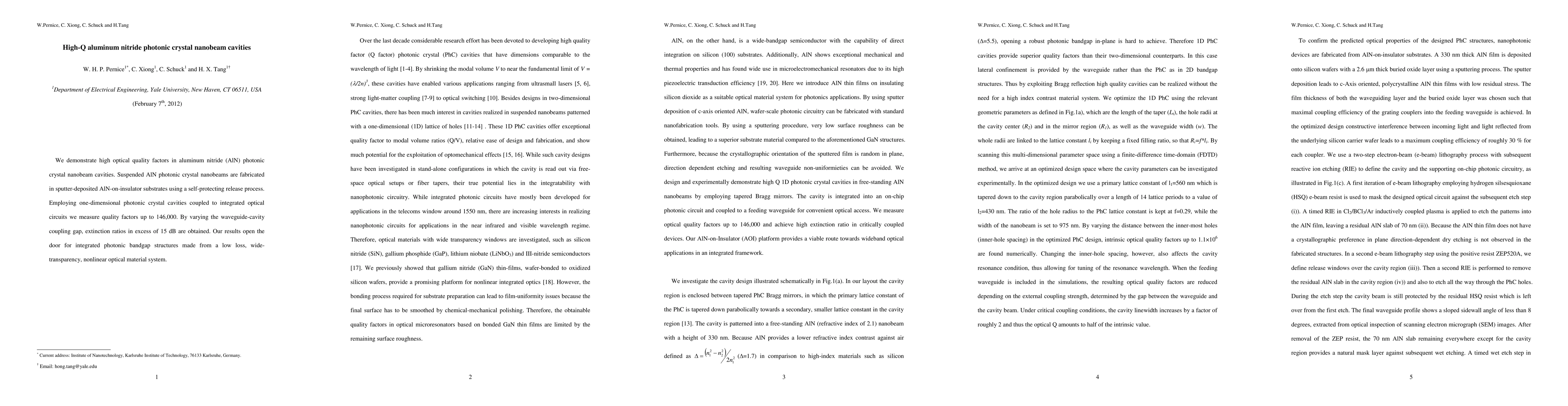 This research demonstrates high-Q photonic crystal nanobeam cavities made from aluminum nitride (AlN), achieving quality factors up to 146,000. The suspended nanobeams are fabricated on AlN-on-insulator substrates, showcasing potential for low-loss, wide-transparency, and nonlinear optical applications.
