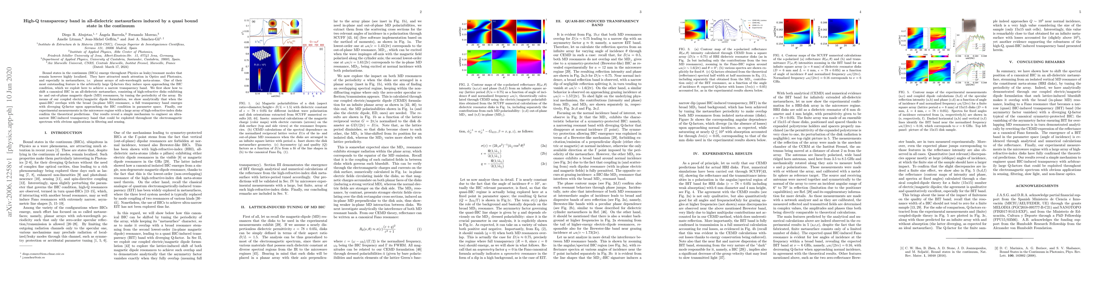 This research explores the use of quasi bound states in the continuum (quasi-BIC) in all-dielectric metasurfaces to achieve a high-Q transparency band. By tuning the metasurface's periodicity, the authors analytically demonstrate the emergence of an ultra-narrow transparency band with an increasing Q-factor near the BIC condition, which is experimentally validated in the microwave regime, showcasing potential applications in filtering and sensing.