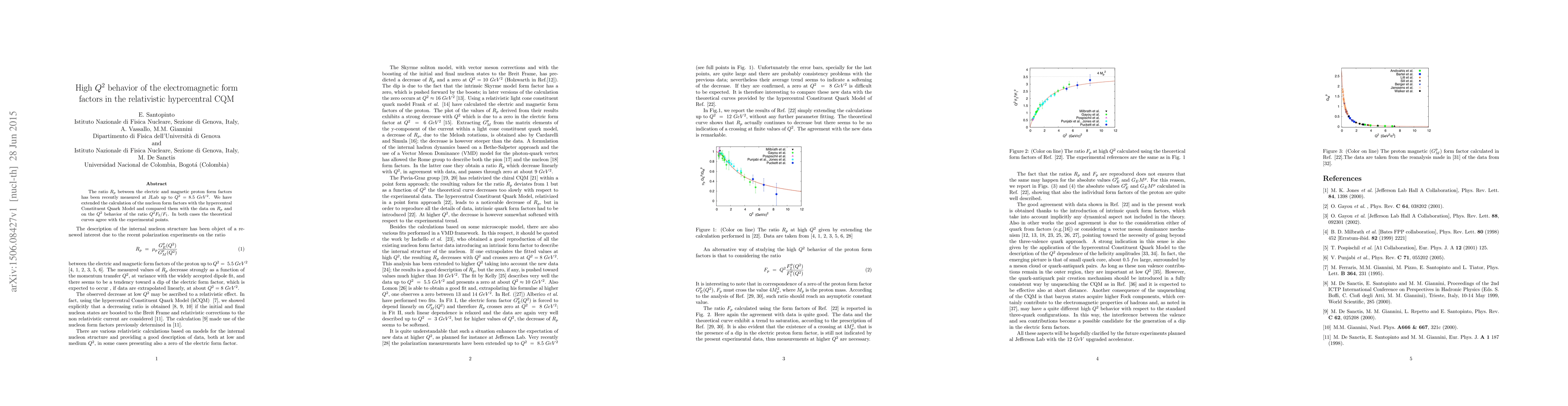 The ratio $R_p$ between the electric and magnetic proton form factors has been recently measured at JLab up to $Q^2=8.5 ~GeV^2$. We have extended the calculation of the nucleon form factors with the hypercentral Constituent Quark Model and compared them with the data on $R_p$ and on the $Q^2$ behavior of the ratio $Q^2 F_2/F_1$. In both cases the theoretical curves agree with the experimental points.
