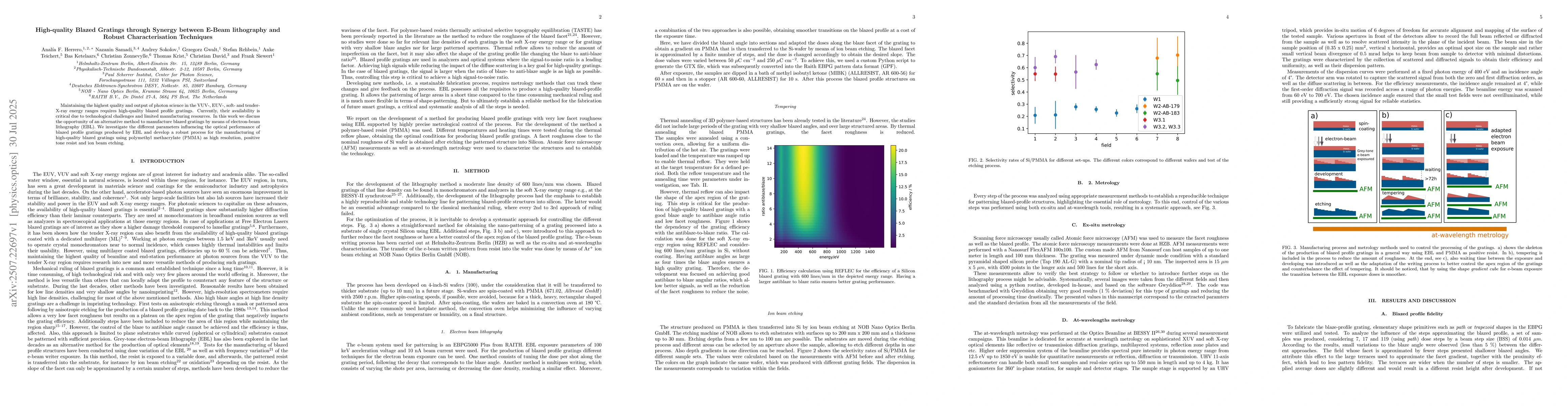 The study presents a robust process for manufacturing high-quality blazed gratings using EBL and PMMA, along with optimized metrology methods and tempering techniques to improve facet roughness and overall grating shape.