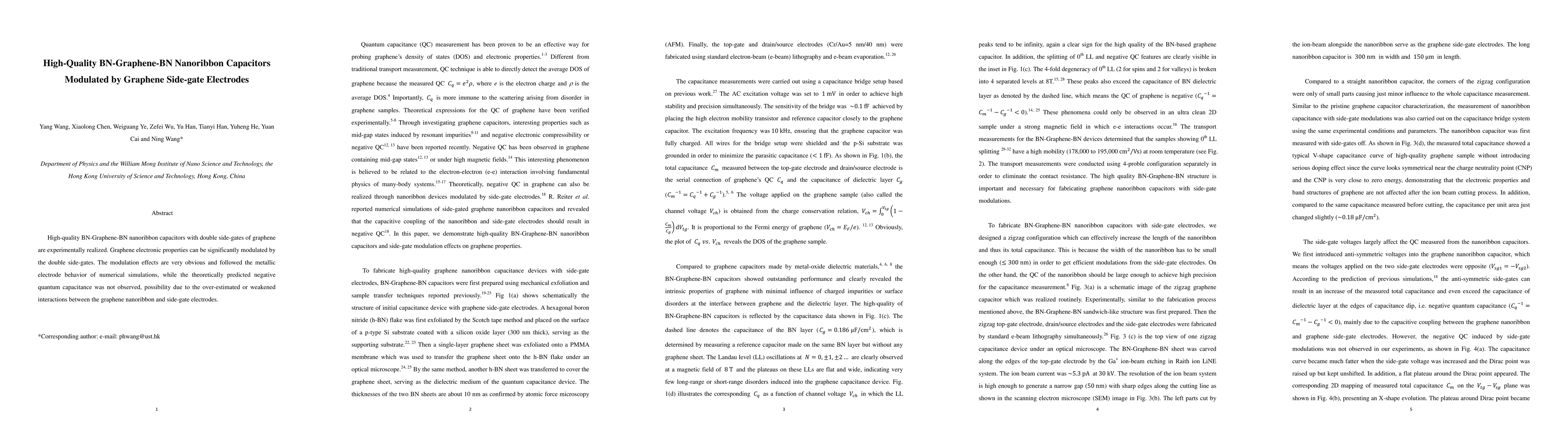 Summary: Researchers successfully fabricated high-quality BN-Graphene-BN nanoribbon capacitors with graphene side-gate electrodes, achieving significant modulation of graphene's electronic properties, though theoretical predictions of negative quantum capacitance were not observed.