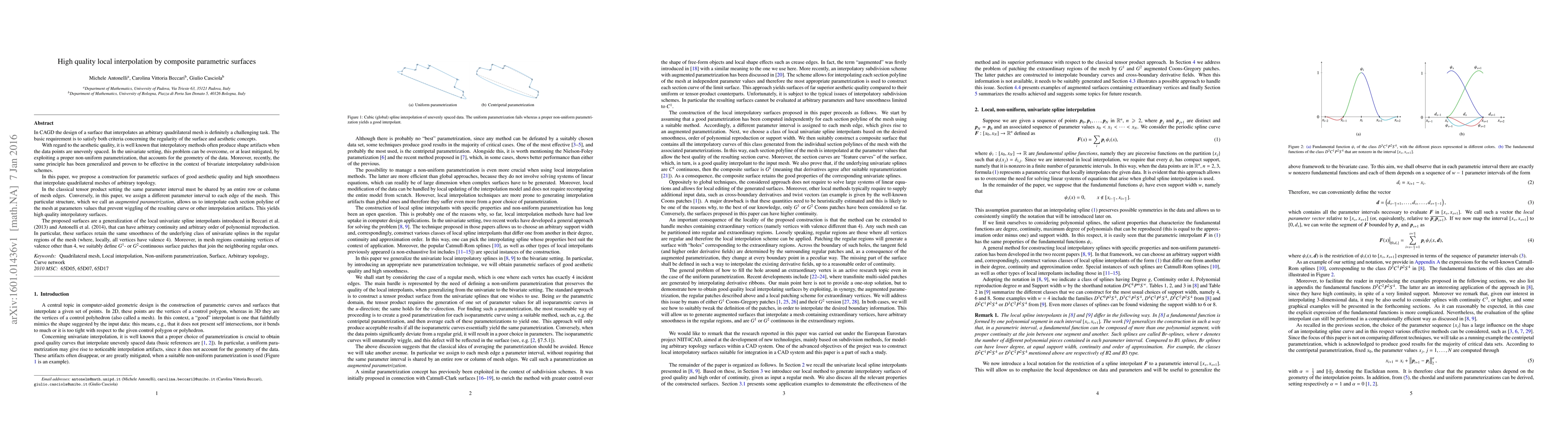 In CAGD the design of a surface that interpolates an arbitrary quadrilateral mesh is definitely a challenging task. The basic requirement is to satisfy both criteria concerning the regularity of the surface and aesthetic concepts. With regard to the aesthetic quality, it is well known that interpolatory methods often produce shape artifacts when the data points are unevenly spaced. In the univariate setting, this problem can be overcome, or at least mitigated, by exploiting a proper non-uniform parametrization, that accounts for the geometry of the data. Moreover, recently, the same principle has been generalized and proven to be effective in the context of bivariate interpolatory subdivision schemes. In this paper, we propose a construction for parametric surfaces of good aesthetic quality and high smoothness that interpolate quadrilateral meshes of arbitrary topology. In the classical tensor product setting the same parameter interval must be shared by an entire row or column of mesh edges. Conversely, in this paper, we assign a different parameter interval to each edge of the mesh. This particular structure, which we call an augmented parametrization, allows us to interpolate each section polyline of the mesh at parameters values that prevent wiggling of the resulting curve or other interpolation artifacts. This yields high quality interpolatory surfaces. The proposed surfaces are a generalization of the local univariate spline interpolants introduced in Beccari et al.(2013) and Antonelli et al.(2014), that can have arbitrary continuity and arbitrary order of polynomial reproduction. In particular, these surfaces retain the same smoothness of the underlying class of univariate splines in the regular regions of the mesh. Moreover, in mesh regions containing vertices of valence other than 4, we suitably define G1- or G2-continuous surface patches that join the neighboring regular ones.