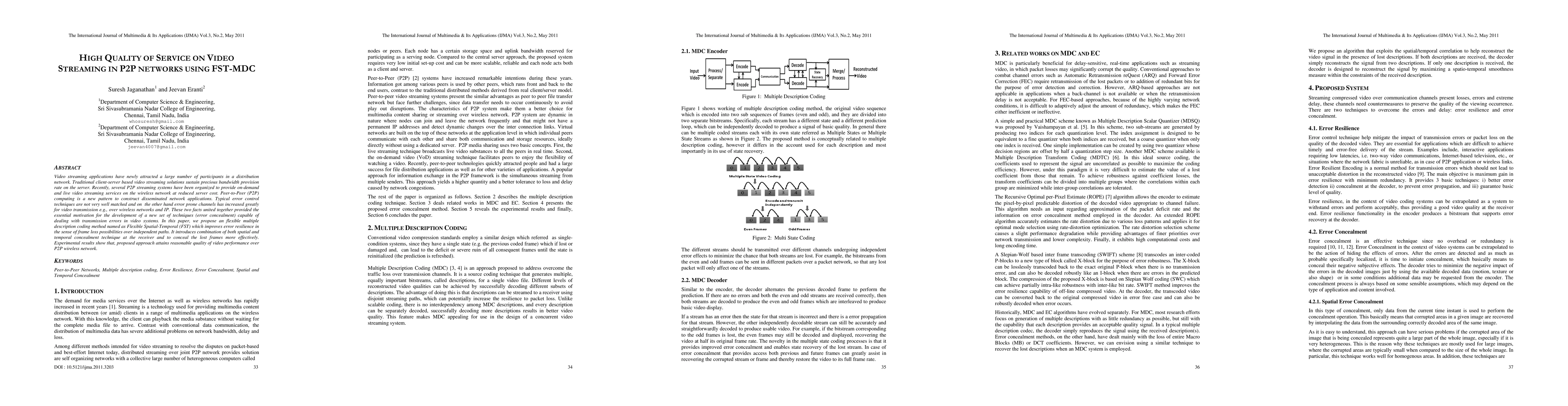 This paper proposes a Flexible Spatial-Temporal (FST) multiple description coding method to enhance error resilience in P2P video streaming over wireless networks. The method combines spatial and temporal concealment techniques to improve video quality by effectively concealing lost frames, achieving reasonable performance in experimental results.