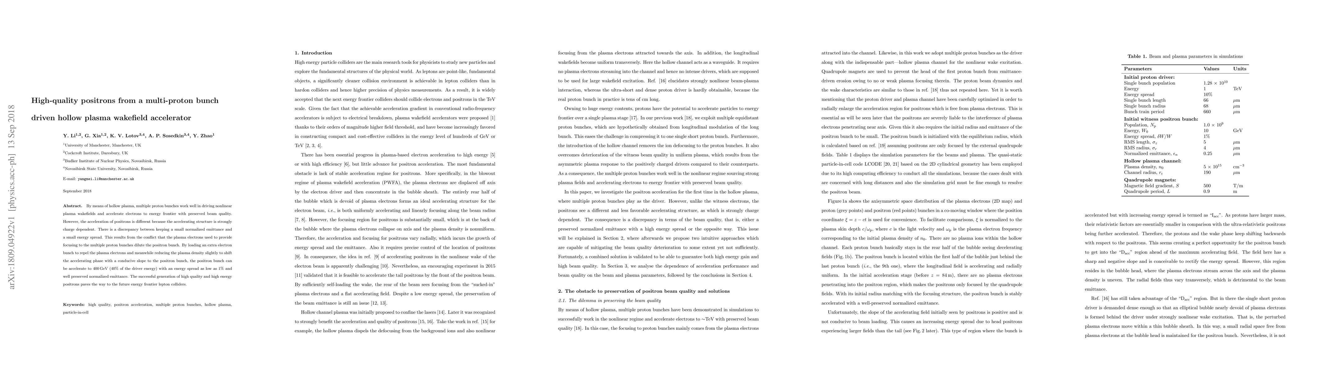 This research demonstrates the generation of high-quality positrons at 400 GeV using a hollow plasma wakefield accelerator driven by multiple proton bunches. The method addresses the challenge of maintaining small emittance and energy spread by introducing an extra electron bunch to repel plasma electrons, optimizing the accelerating phase for positrons.
